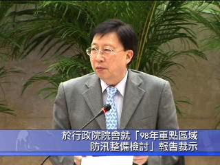 行政院長劉兆玄今(4)日在行政院院會聽取經濟建設委員會「98年重點區域防汛整備檢討」報告後指出,去年卡玫基及辛樂克等颱風造成台灣中南部地區嚴重水患及土石流災情,行政院立即由蔡勳雄政務委員召集組成專案小組,除針對原有治水計畫及防災機制作通盤檢討外,並本移緩濟急原則,優先辦理各項災害修復工程。