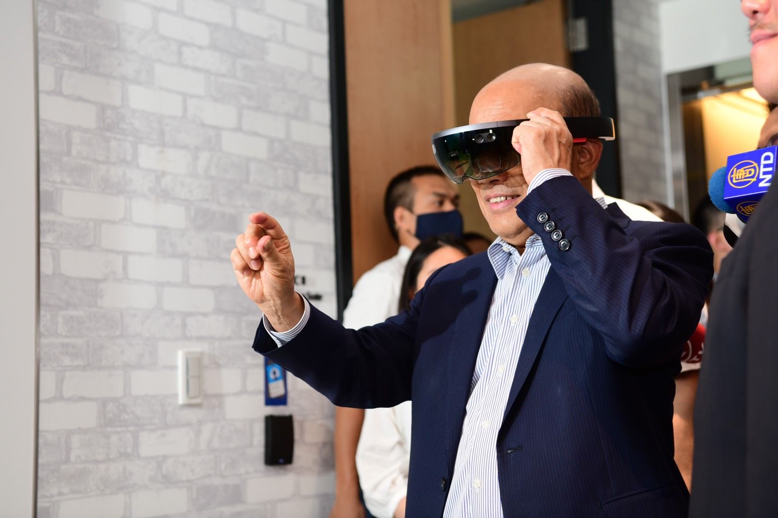 蘇院長也聆聽微軟簡報,簡報過程中微軟表示希望能進一步提升跟台灣政府的合作。蘇院長也回應,數位科技應用是台灣所需,前瞻預算也有納入數位建設,希望政府能與微軟合作,並提升偏鄉數位建設,更同步指示各部會盤點研議。