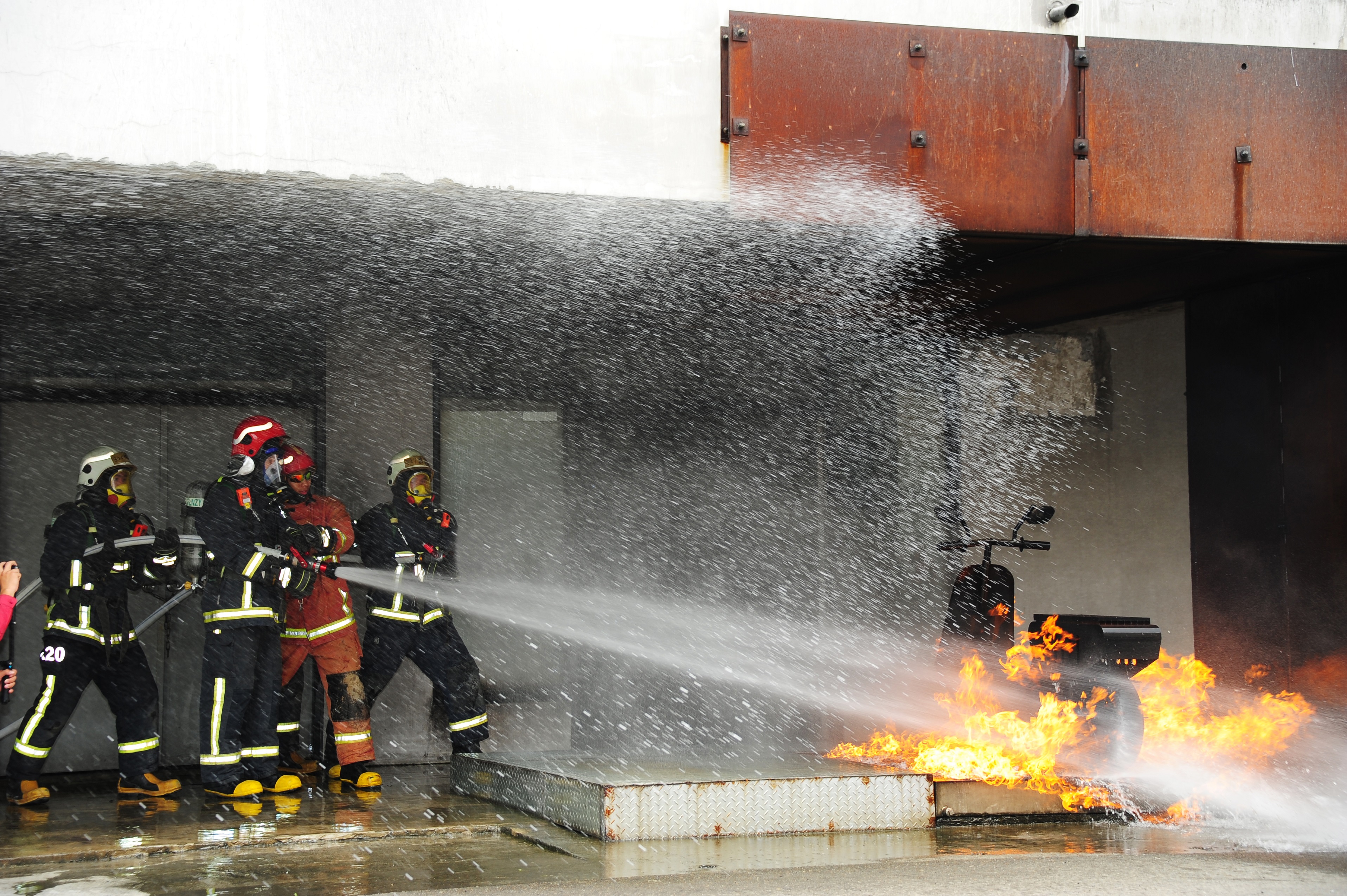 行政院長張善政今(20)日巡視內政部消防署訓練中心及中央災害應變中心中部備援中心,除參觀特搜隊搜救器材展示及搜救犬搜救演練外,也實地體驗穿著消防裝備當一日消防員,執行騎樓機車火災搶救演練,成為訓練中心自99年成立以來第一位體驗打火行動的行政院長。