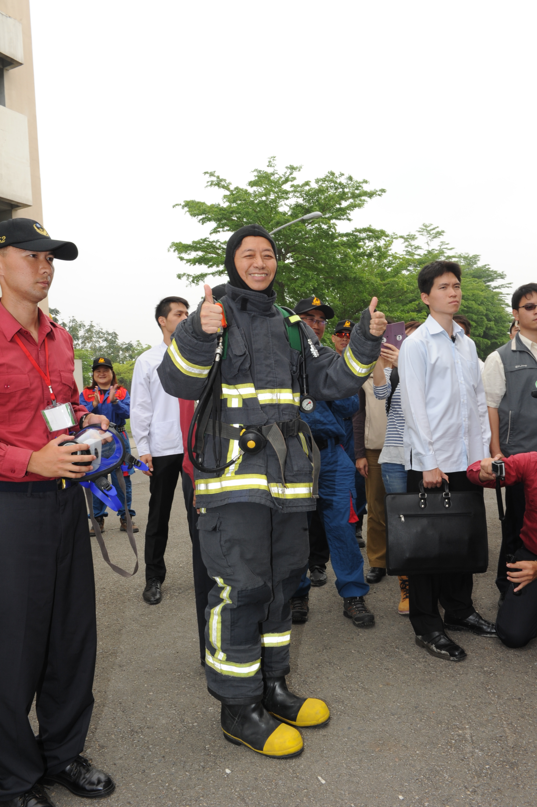 張院長表示,消防裝備相當沉重,可以體會消防員工作的辛苦,能練就這一身功夫非常不容易,但在救人的同時,更重要是保護自己的生命安全。張院長特別為消防及搜救弟兄加油打氣,並期許他們在整體訓練過程中,能紮紮實實、一步一腳印將訓練做到位,一旦災變發生,無論火災或地震,民眾都可信賴消防隊員。