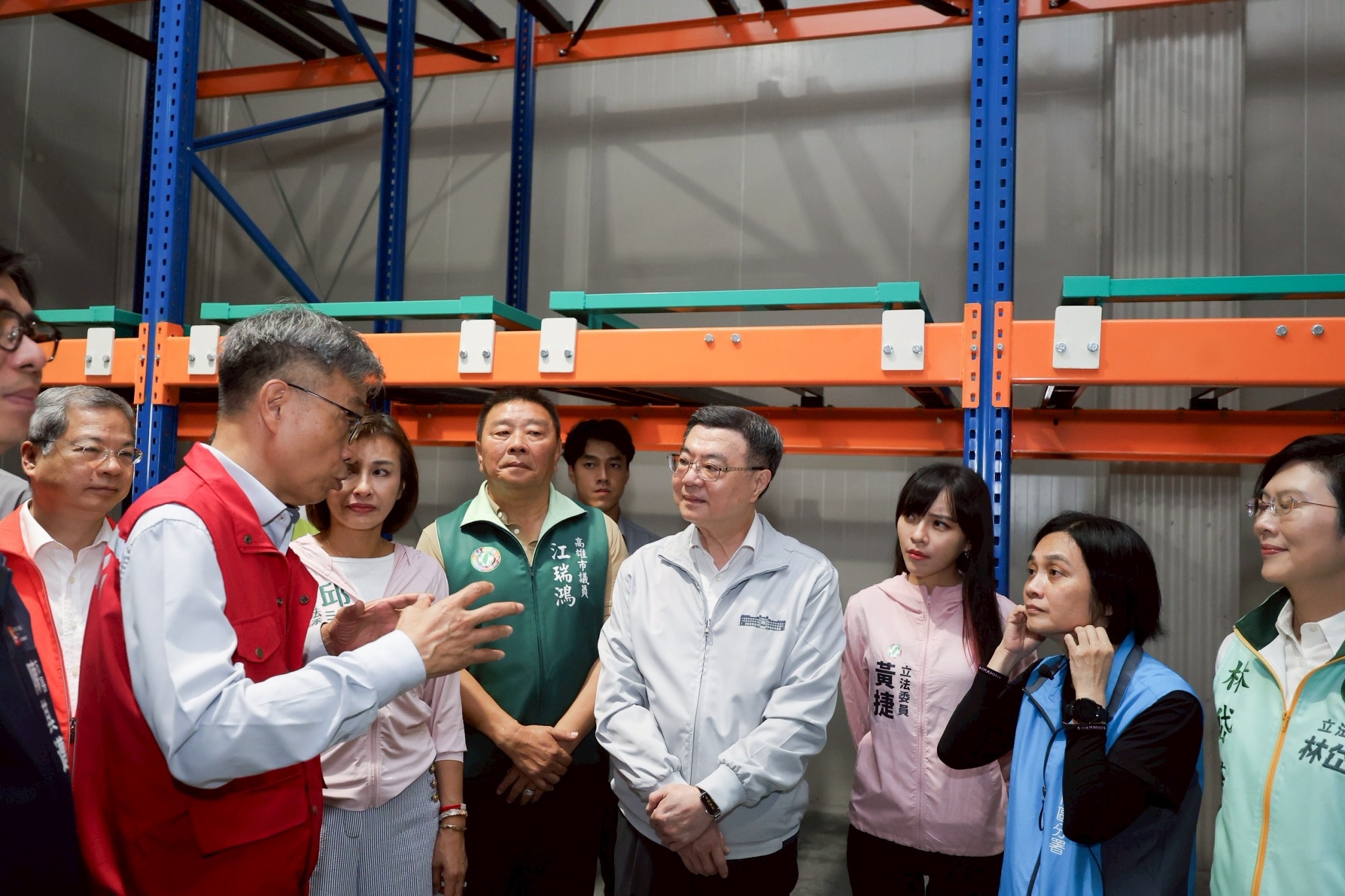 此行,卓院長首先聽取農業部農糧署黃昭興副署長說明「稻米存量安全整備現況及強化糧食安全韌性」簡報,並於致詞結束後,與行政院龔明鑫秘書長、李慧芝發言人、農業部陳駿季部長、行政院南部聯合服務中心謝文斌副執行長、林岱樺立委、邱議瑩立委、許智傑立委、黃捷立委及高雄市陳其邁市長等人,依序至一號倉庫、冷水主機房及冷鏈倉庫,進行現地視察並合影留念。