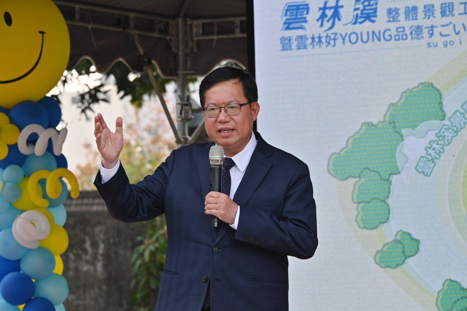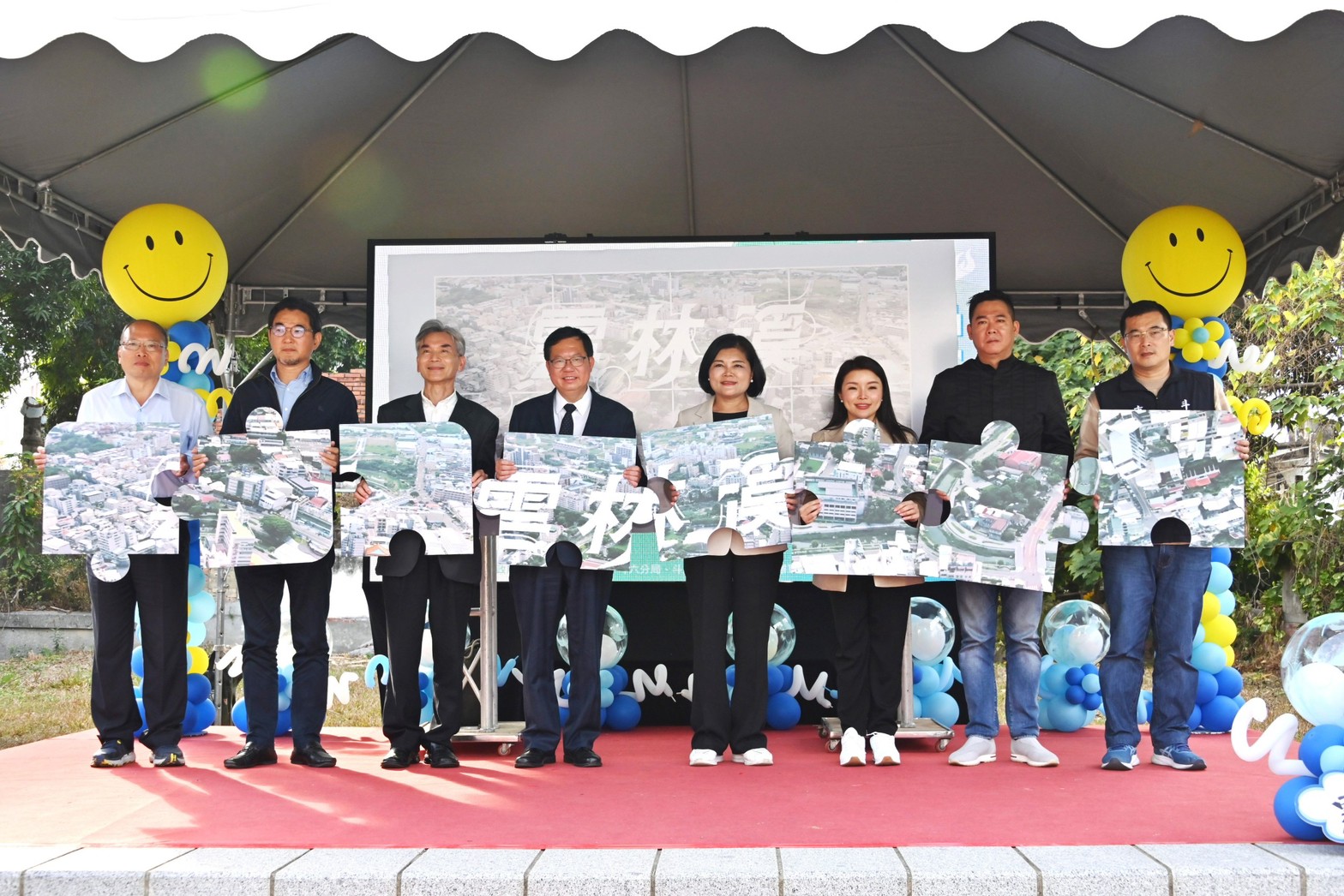 此行,鄭副院長蒞臨現場後,首先欣賞雲林縣鎮西國小小提琴開場表演、觀賞雲林溪施工前、中、後生態景觀影片,致詞結束後與環境部薛富盛部長、立法院劉建國委員、張嘉郡委員、雲林縣張麗善縣長、雲林縣議會黃凱議長、斗六市林聖爵市長等貴賓一起舉起雲林溪風華再現拼圖完成啟用儀式,隨後與貴賓合影留念。