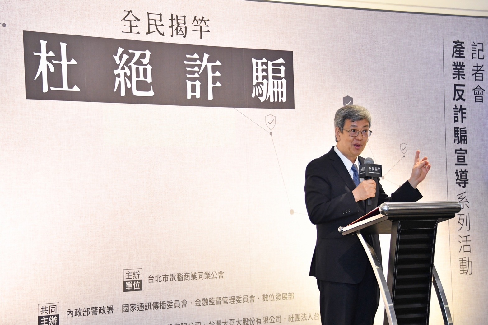 行政院長陳建仁今(30)日出席「產業自律反詐騙宣導系列活動記者會」時表示,感謝與會企業願意站出來與政府一同打詐,負起企業社會責任,努力保障民眾身家財產安全。行政院已於本(5)月初提出「新世代打擊詐欺策略行動綱領1.5版」,透過「減少接觸」、「減少誤信」、「減少損害」的「三減」策略,持續加強打詐工作,並與網際網路平臺業者加強合作,全力打擊詐欺廣告及帳號,相信透過公私協力、團隊合作、全民共同努力,定能將打詐工作做到最好。