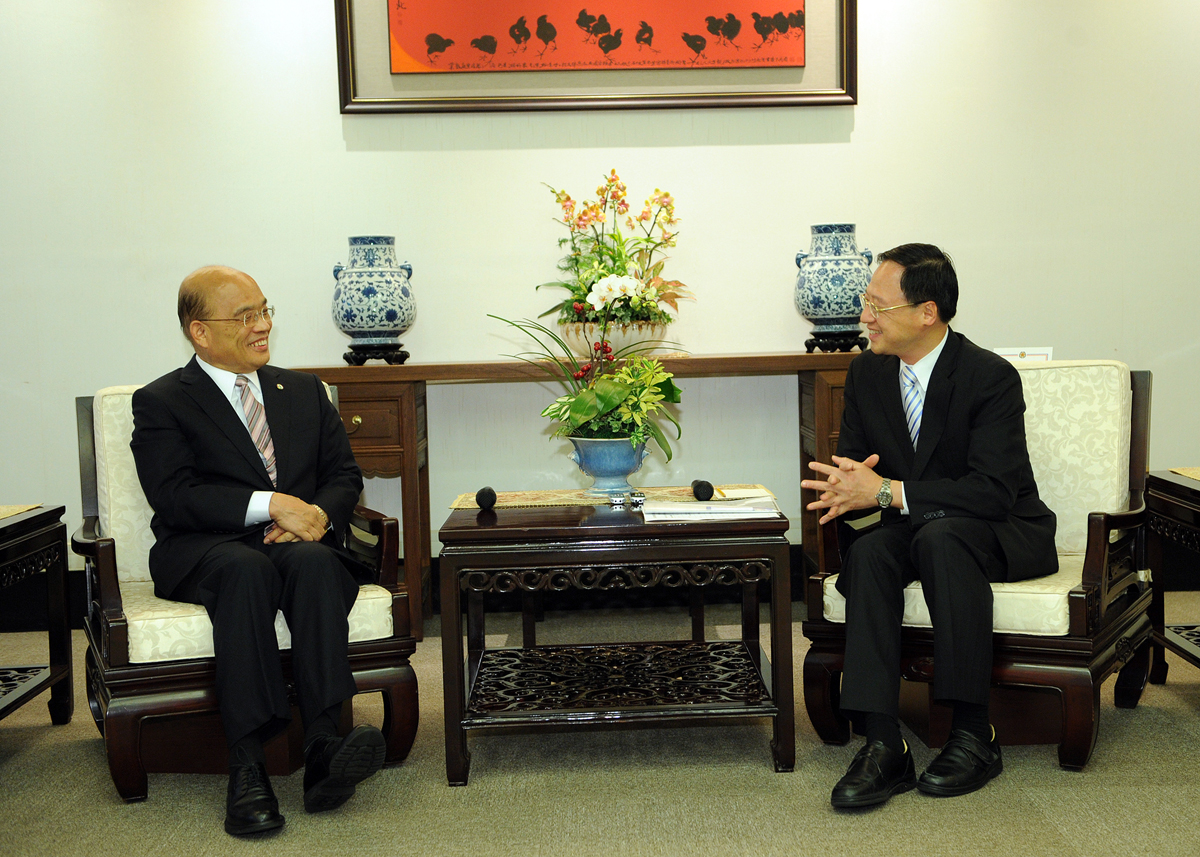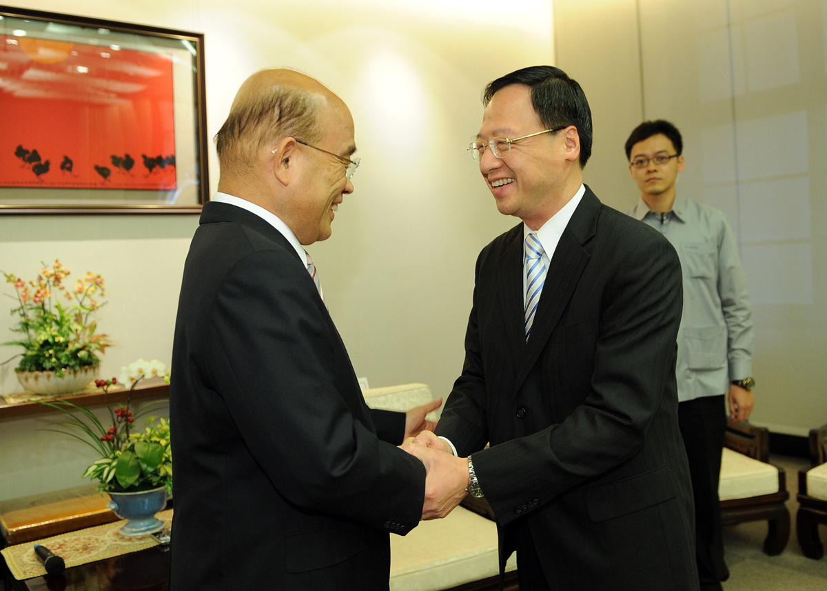 民進黨主席蘇貞昌今(21)日下午拜會行政院長江宜樺,商討核四議題,雙方坦率交換意見。