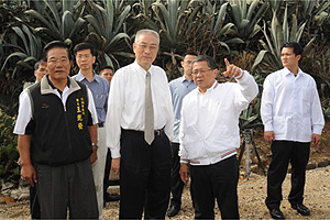 吳院長赴縣府聽取簡報前,先前往林投公園及青灣仙人掌公園實地視察,了解林投公園及青灣仙人掌公園規劃情形,並聽取小門嶼地質公園(玄武岩地質公園)環境整頓簡報。