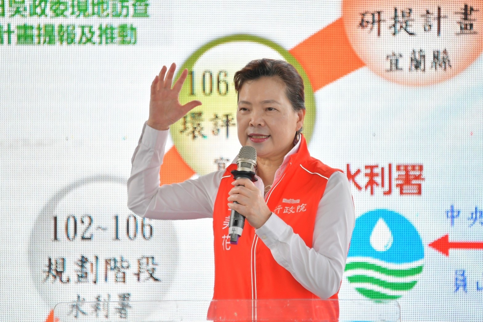 陳院長強調,蔡英文總統上任迄今,已透過前瞻基礎建設及公建計畫,為宜蘭的治水投入超過46億元,推動包括「蘇澳鎮永春昆明排水改善」、「五結防潮副閘門改建」及「安農溪大埔堤防改善」等建設,也感謝宜蘭縣政府與中央共同合作,以及陳歐珀委員在立法院努力爭取預算,才讓各項重大建設得以順利推展,讓宜蘭鄉親生活變得更美好、更安全、更美滿、更幸福,也讓其他各縣市民眾踴躍前來宜蘭觀光休憩,進一步帶動宜蘭整體發展。
