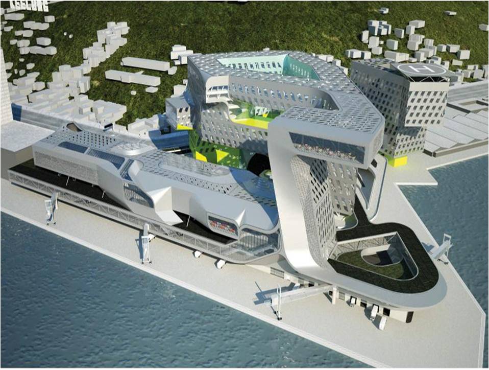 高雄港客運專區部分,將結合高雄地區港灣及城市水岸意象,於高雄港19至21號碼頭區興建地下二層、地上十五層,高聳煙囪、銀白船舶的地標性建築,提供港埠辦公空間、國際會議廳、旅運登船廊道、旅客入、出境及其他商旅相關服務,預計於104年底完工,總經費為42億元,屆時將可供世界最大的國際郵輪-「海洋魅力號」靠泊(載客人數5,400人次)。