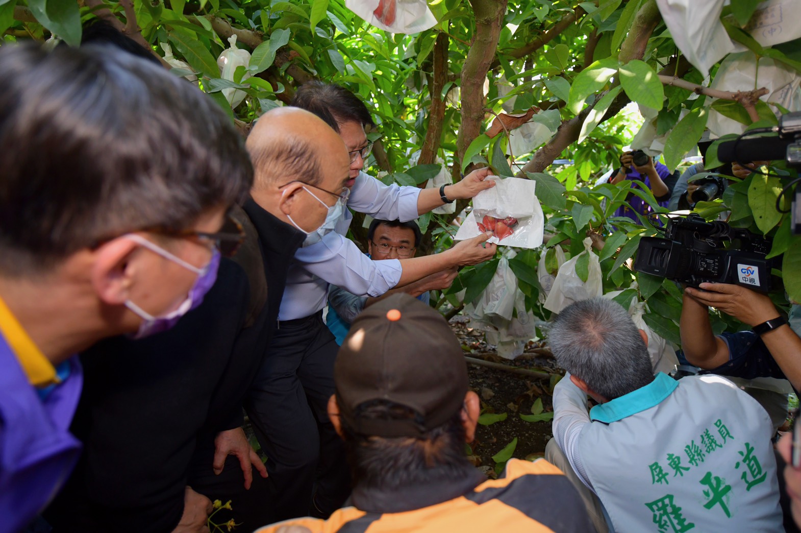 受寒害影響,農民即將於一週後收成的蓮霧凍損,果園現場只見落了一地的蓮霧,院長看了直嘆心疼農民的心血。院長也拿起落地的蓮霧親嚐果肉,惋惜色澤與甜份皆不足,並承諾政府一定會補助果農,請農民安心。