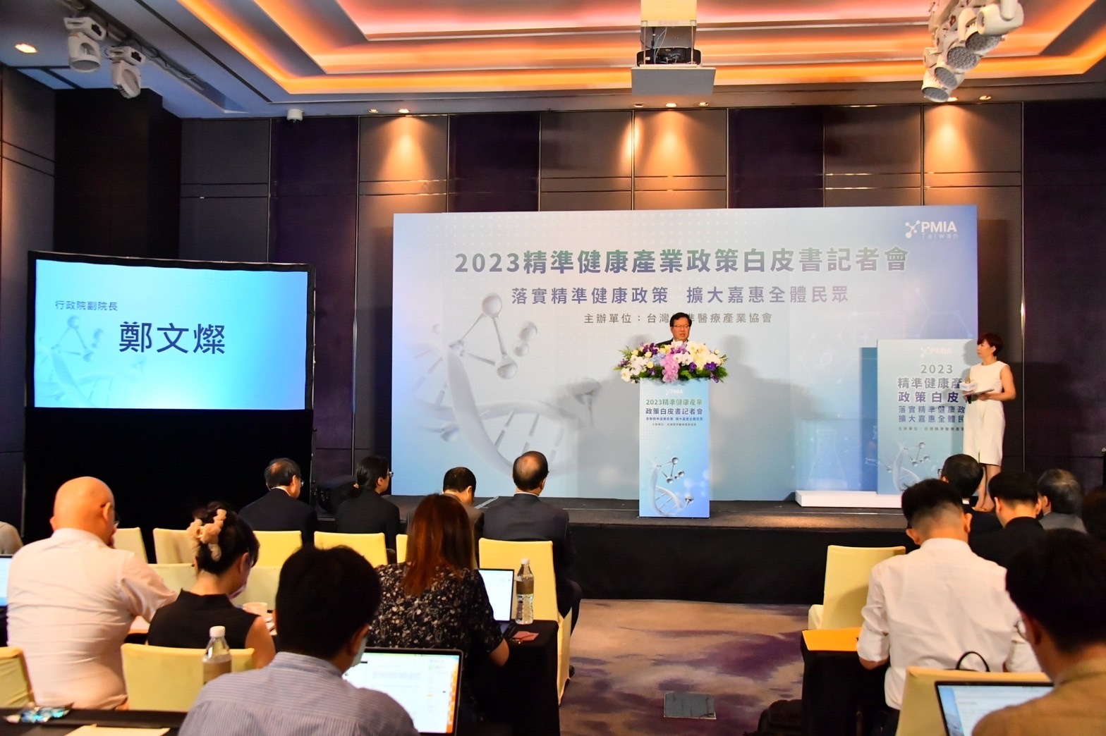 行政院副院長鄭文燦今(10)日出席「2023精準健康產業政策白皮書記者會」時表示,自蔡英文總統上任以來,政府積極推動「生醫產業創新推動方案」及「臺灣精準健康戰略產業發展方案」,而臺灣在醫學與科技領域皆具有領先地位,兩者相輔相成之下,必能成為臺灣精準健康及精準醫療產業的重要支柱,至盼臺灣精準醫療產業協會與政府共同合作,不僅保護國人健康福祉,更能促進醫療產業向上發展。