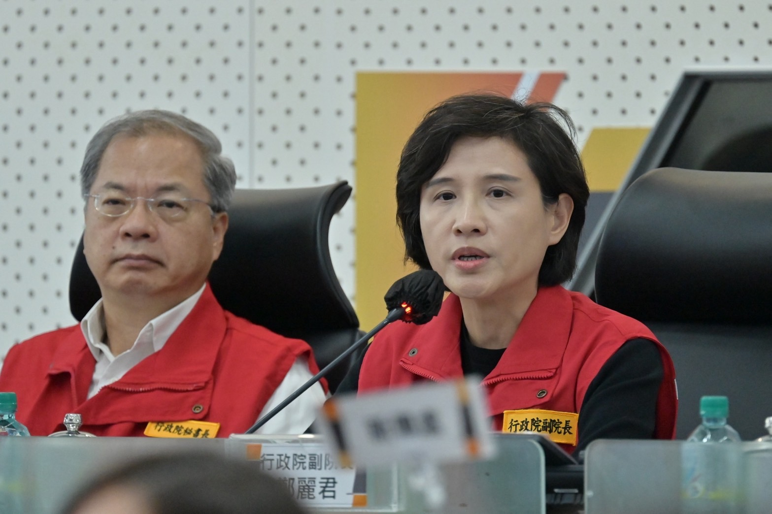 今日包括行政院鄭麗君副院長、龔明鑫秘書長、季連成政務委員、李慧芝發言人、中央災害應變中心指揮官暨內政部劉世芳部長、經濟部郭智輝部長、交通部陳世凱部長、衛生福利部邱泰源部長、環境部彭啓明部長、數位發展部黃彥男部長、農業部胡忠一次長、教育部葉丙成次長、內政部消防署蕭煥章署長、內政部警政署張榮興署長、經濟部水利署賴建信署長等人,均出席中央災害應變中心第五次工作會報。