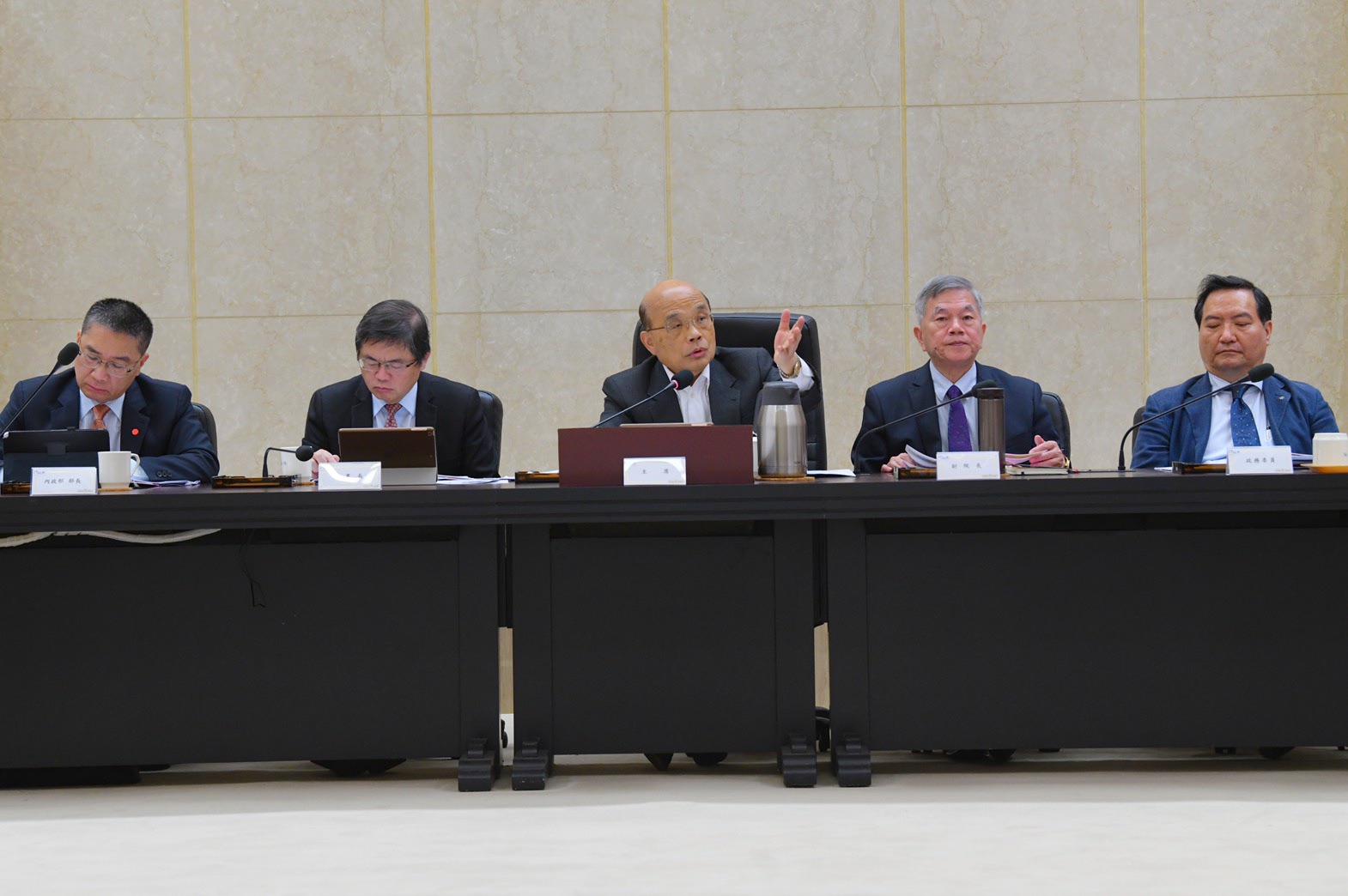 行政院長蘇貞昌今(23)日主持「行政院109年第1次治安會報」並聽取「校園安全維護策進作為」及「強力打擊街頭暴力犯罪」報告。院長表示為遏止不肖之徒,防範憾事發生,已完成「槍砲彈藥刀械管制條例」及「刑法」第149、150條聚眾鬥毆罪修正案。院長強調「人」與「態度」的重要性,期許相關單位精進,讓民眾免於損害;同仁的努力政府都有看到,「工欲善其事,必先利其器」,政府會盡全力支持相關單位執行治安工作,並提供必要機具及完善機制。