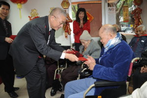 行政院長吳敦義今(13)日下午訪視台北市立浩然敬老院,肯定台北市政府用心推動老人福利工作,並轉達馬總統對長輩們的關懷之意。吳院長祝福浩然敬老院的長輩春節愉快,亦致贈年節加菜金10萬元。
