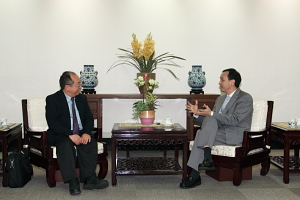 行政院副院長朱立倫今 (3)日下午接見環境品質文教基金會代表謝英士博士及美國農業部林務局化學專案負責人郝慰民博士(Dr. Wei Min Hao)時表示,今年政府兩大施政目標,一為擴大就業並將失業率降至5%以下,另一是節能減碳政策,這將是各部會未來整合及努力的方向。