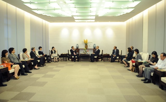 「2010年海外傑出華人企業家參訪團」團員,包括達茂能源公司董事長林成賢夫婦、美國Aurora Imaging Technology,Inc.醫療科技公司總裁何淑圭女士等一行共14人。今日在場陪同院長接見的有僑委會委員長吳英毅及行政院第2組組長李鐵民等人。