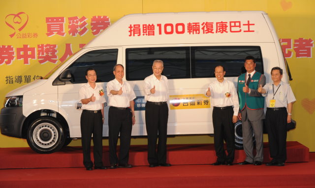 台灣彩券公司指出,為將中獎人的愛心做最妥善的規劃與應用,該公司在去年公益成果發表會上曾允諾3年內將勸募100輛復康巴士,捐贈給各縣市政府營運,以紓解各縣市復康巴士數量的缺口。透過公益彩券中獎人的支持,提早兩年成功達成勸募目標,將100輛復康巴士捐贈給各縣市政府。