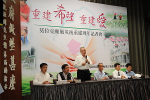 重建會表示,在相關單位的努力下,各項重建工作已略見成果。現階段工作重點也逐漸由初期災民「安」及「居」的基本需求,轉移至「樂」及「業」等長遠性、延續性的規劃。在家園重建方面,永久屋已完工1,480間,受益人數近6,000人;在基礎建設重建方面,受創6大公路系統計128處、長達653公里、8處環島鐵路均於98年12月底前搶修完成,甲仙大橋、阿里山公路等重建指標工程均已提前完成,周邊地區的產業逐漸復甦中;在產業重建方面,蘭花已全數恢復、石斑魚復養亦達8成,相關單位除擬具一鄉一特色產業發展計畫外,也協助原鄉農特產品行銷,建立行銷網路平台,配合辦理多場災區農特產促銷活動,另外也以企業認養方式,媒合認養災區,來扶植災區產業發展。中央及地方政府也配合各永久屋社區規劃配套產業及套裝旅遊行程,就是希望能協助活化災區經濟,解決多數災民生計的問題。重建會指出,在風災將滿周年之際,重建會將加快重建腳步,以希望與愛為災民建構一個安居樂業,得以重生的未來。