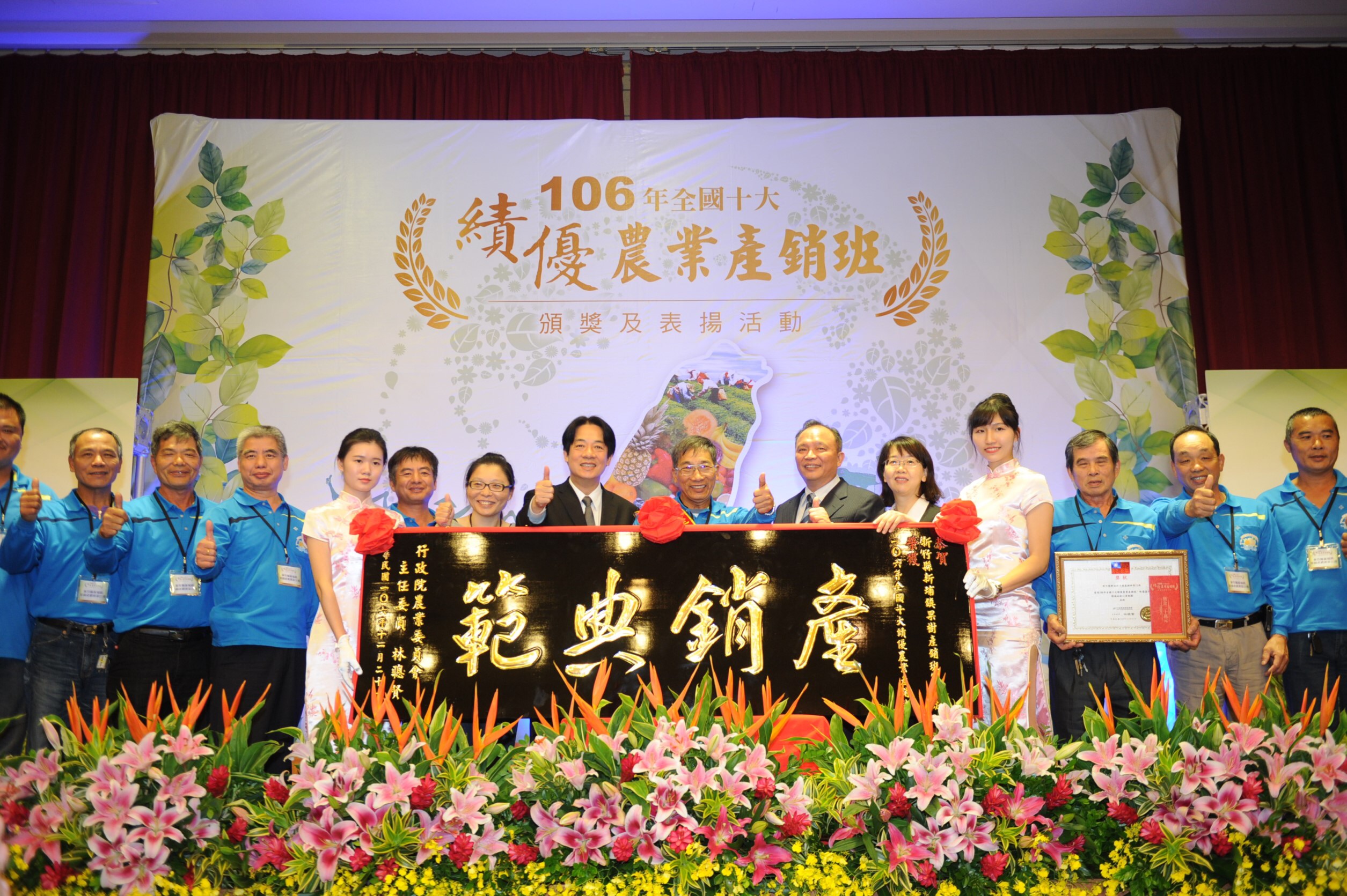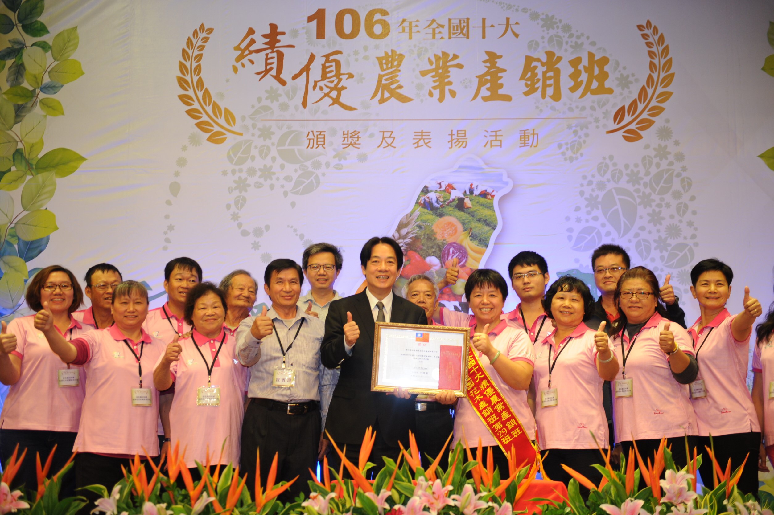 賴院長指出,今天的得獎團隊從6,300多個產銷班中脫穎而出,十分不易,更是莫大的光榮,同時也展現台灣農業的進步,希望未來台灣農業有更好的發展,農作能夠更豐收,農民都過更好的生活。