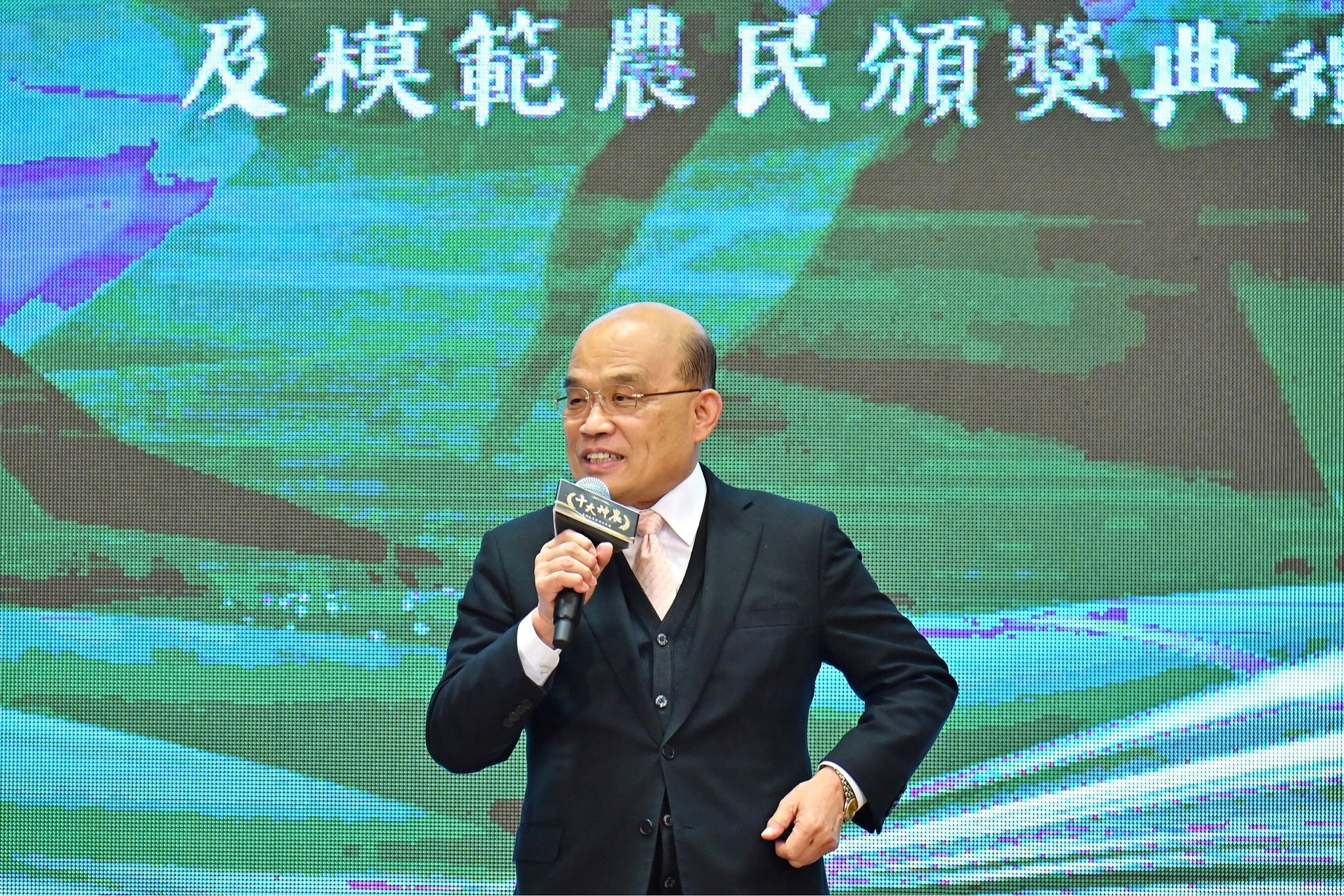 行政院長蘇貞昌今(9)日出席「第33屆全國十大神農暨模範農民頒獎典禮」時表示,他是農村子弟,並曾擔任農業縣的屏東縣長,一輩子大都和農民朋友在一起打拚,因此他十分願意為農民朋友多做一些事、為臺灣農業多打拚一天,而政府也持續透過國家政策照顧每一位在自己土地上努力打拚的農民,至盼大家能以得獎者為典範,讓全國農友知道,投入農業也能出頭天,獲得社會敬重。