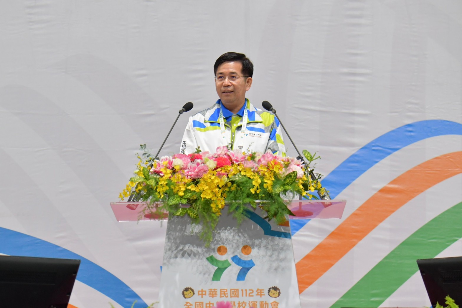 陳院長也期勉所有選手勿忘當時選擇投入運動的初心,繼續保持毅力和無限衝勁,在全中運的舞臺上好好表現、發揮長才,爭取最佳成績,為所代表的縣市爭光,並不斷超越自己、超越巔峰,在未來的國際賽事中,為國家帶來更多光榮與喜悅,並祝福本屆賽事順利圓滿成功。最後,陳院長代表總統宣布112年全國中等學校運動會正式開始。