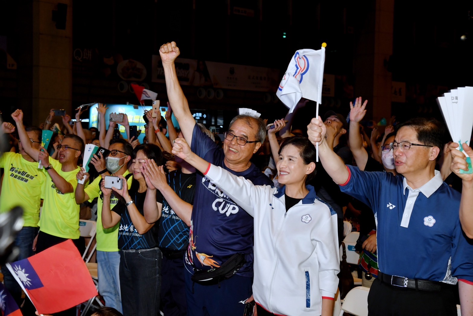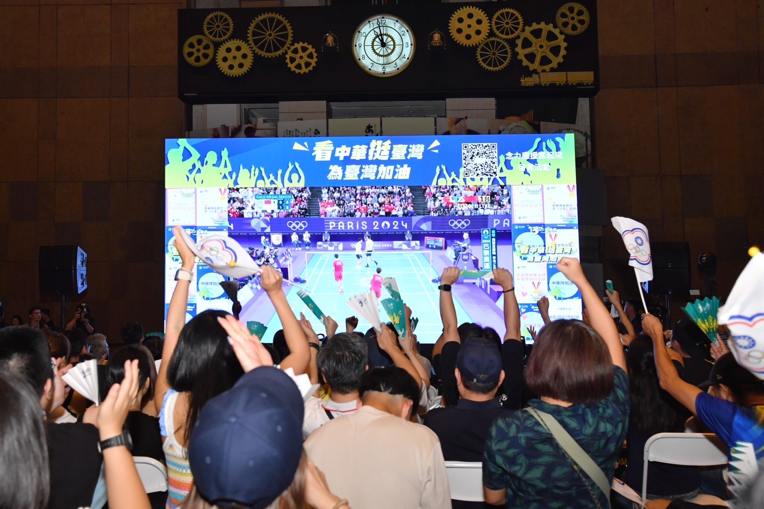 我國羽球好手李洋/王齊麟於本(8)月4日晚間出征2024巴黎奧運男雙金牌戰,迎戰中國男雙組合梁偉鏗/王昶,行政院副院長鄭麗君特別前往臺北車站一樓大廳觀看直播賽事,與現場近3千名熱情球迷一起為「麟洋配」應援加油。最終,麟洋兩人不負眾望以21:17、18:21、21:19二比一獲勝,不僅為中華隊在巴黎奧運奪得首面金牌,也締造臺灣羽球史上連續兩屆奧運奪金新紀錄。