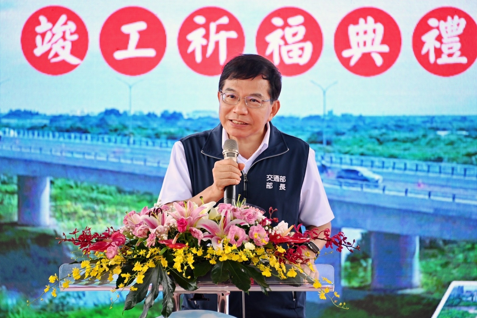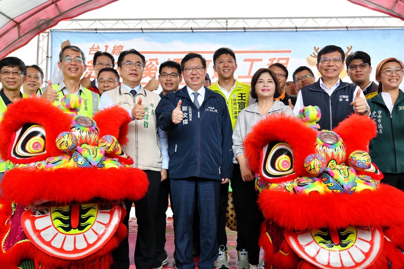 今日活動由祥獅引導鄭副院長及交通部王國材部長進入會場,由音樂家黃詩喬表演小提琴拉開序幕,舞獅獻瑞為竣工祈福,公路總局陳文瑞局長簡報後,由鄭副院長主祭,黃偉哲市長、王國材及公路總局陳文瑞局長等來賓陪同上香獻果一起祈求用路出入平安,活動圓滿成功。隨後,鄭副院長即趕赴南投縣勘災。