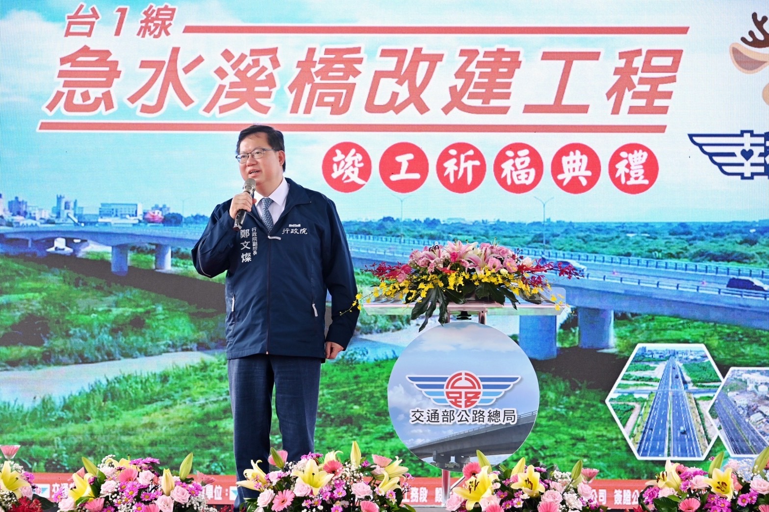 行政院鄭副院長今(7)日出席「台1線急水溪橋改建工程」竣工祈福典禮時表示,新橋梁完工後,可改善台南市新營區及柳營區交通運輸服務網絡,提高民眾進出便利性及用路人行車安全,該橋位居交通運輸、經濟及觀光主要樞紐,有效結合當地柳營科技工業園區、國家圖書館南部分館等重大建設開發,將可帶動台南市溪北地區工商產業發展,提高土地利用價值及都市發展潛力。