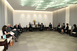 朱副院長並與該團與會人員針對兩岸政策及簽訂兩岸經濟協議(ECFA)交換意見,朱副院長指出,馬總統的兩岸和平發展路線正確,與中國大陸維持和平、穩定與漸進的關係,包括開放陸客觀光,推動兩岸直航。而簽訂兩岸經濟協議則是維繫台灣在全球市場競爭力,協助國內產業因應區域整合的趨勢。台灣也必須和主要貿易夥伴例如美國、新加坡、馬來西亞、日本、南韓簽署自由貿易協定,才會凸顯效益。中國大陸是台灣最大的貿易伙伴,這就是我們要簽署ECFA的主因。