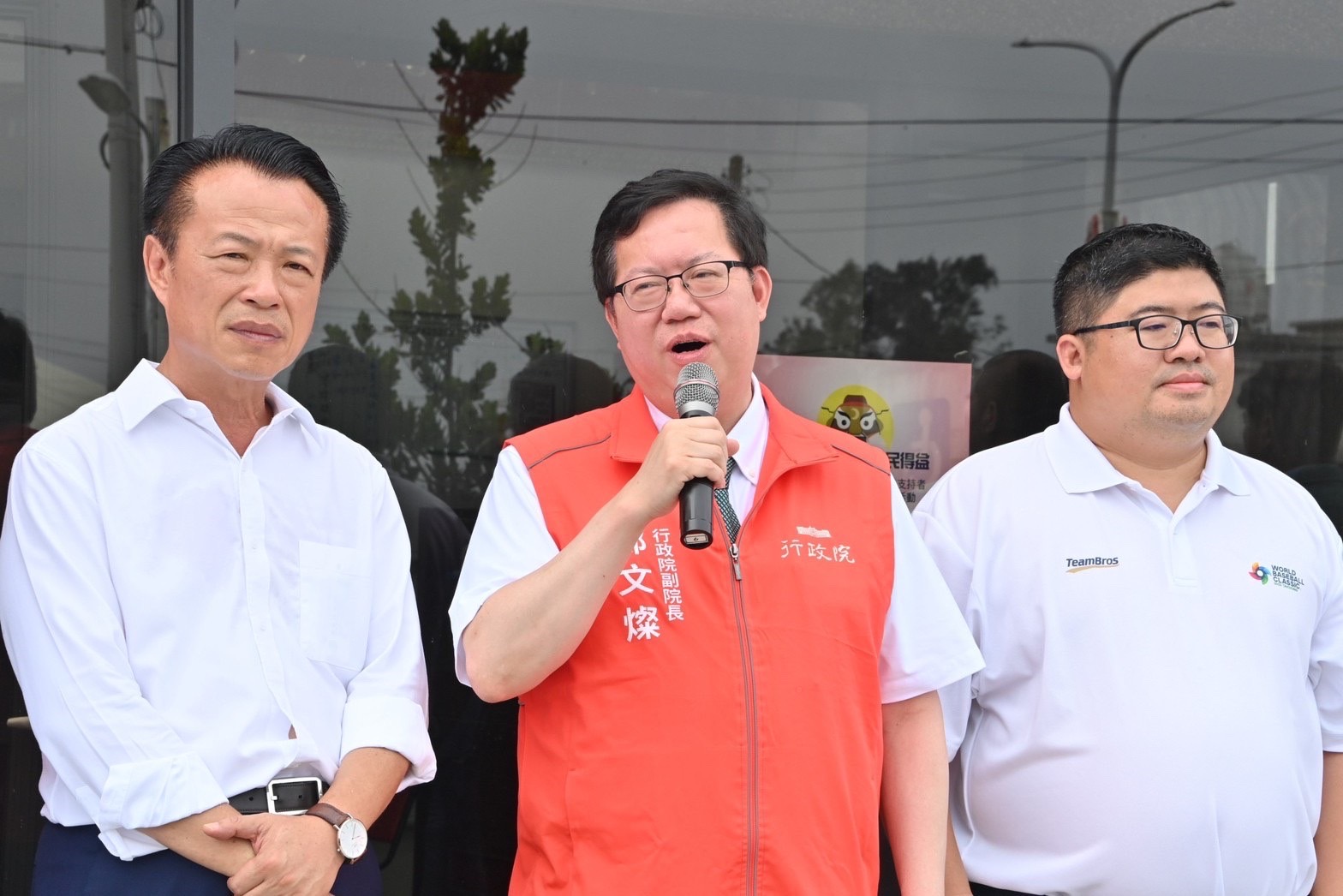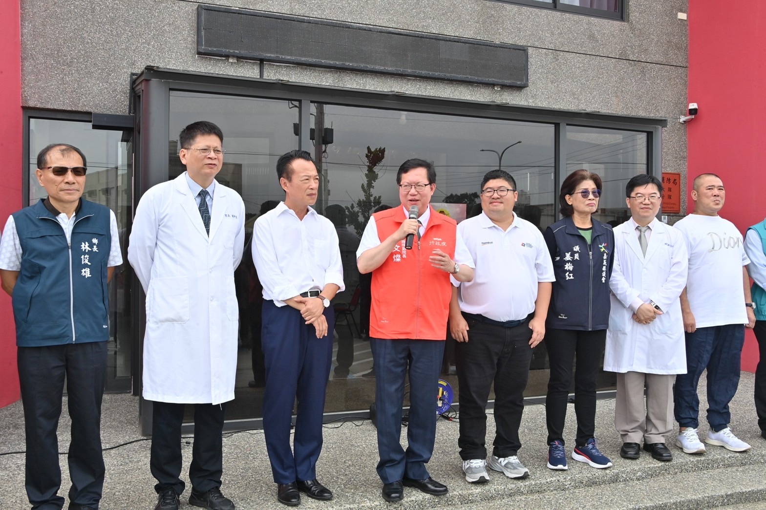 鄭副院長今(7)日上午抵達現場後,宣布中央支持部立朴子醫院東石院區興建計畫,獲得在場民眾的熱烈掌聲,隨後與嘉義縣翁章梁縣長、立法院蔡易餘委員、衛生福利部醫福會楊南屏副執行長、朴子醫院賴仲亮院長及在場貴賓合影留念。
