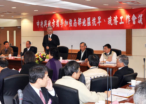 今天與會的南部地區縣、市長除了感謝行政院舉行這次會議外,也提出多項與節水和疏濬有關的建言,只要是有急迫性或是具有可行性,吳院長均已指示相關部會立即妥處、研議。今天出席的縣、市首長包括:高雄市長陳菊、嘉義市長黃敏惠、台南市長許添財、台南縣長蘇煥智、高雄縣長楊秋興、屏東縣長曹啟鴻;嘉義縣和澎湖縣則分別由副縣長吳容輝及縣政府主任秘書許萬昌代表出席。