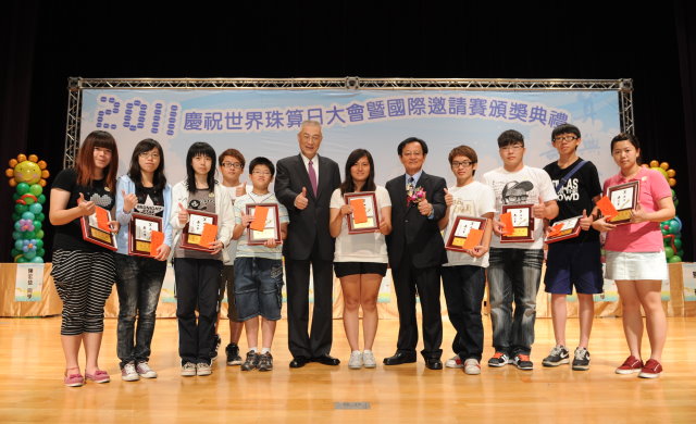 吳院長也特別頒發兩人最高成就獎,一為是從日據時代就開始從事珠算教育,開創台灣珠算歷史先河的林天來老師,另一為則是在上海市從事珠心算教育數十載的上海市珠心算協會會長張德和兩人,同時吳院長也頒發獎牌表揚推廣珠心算及數學教育績效卓越人士。