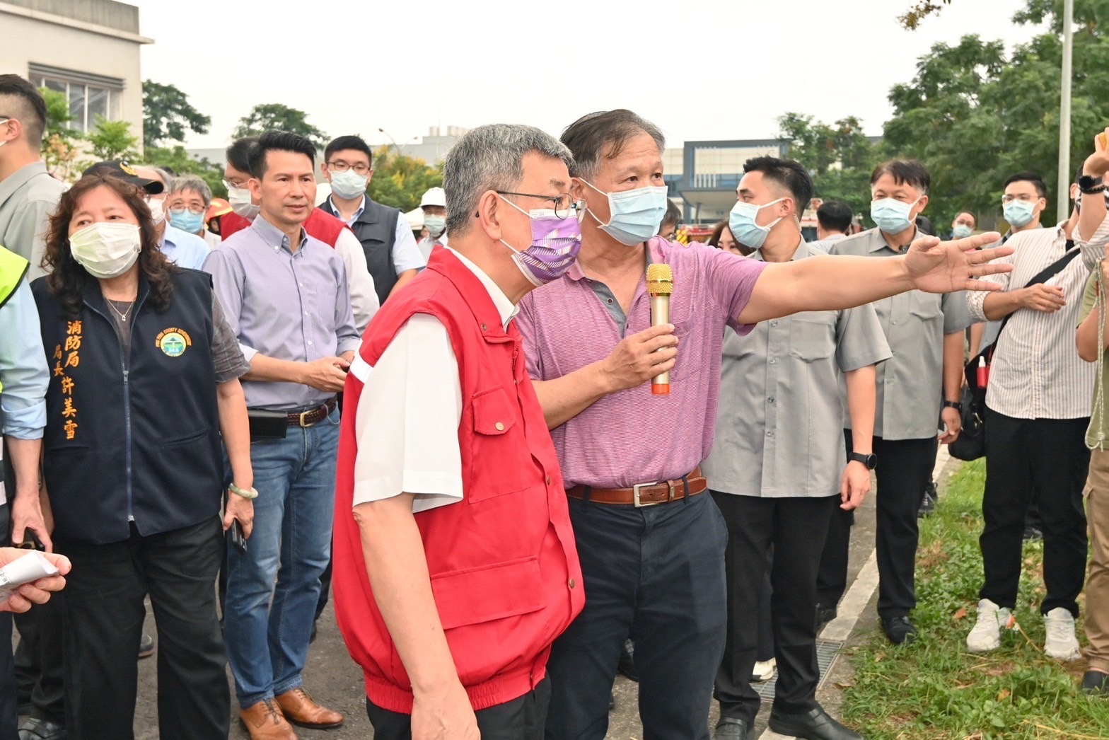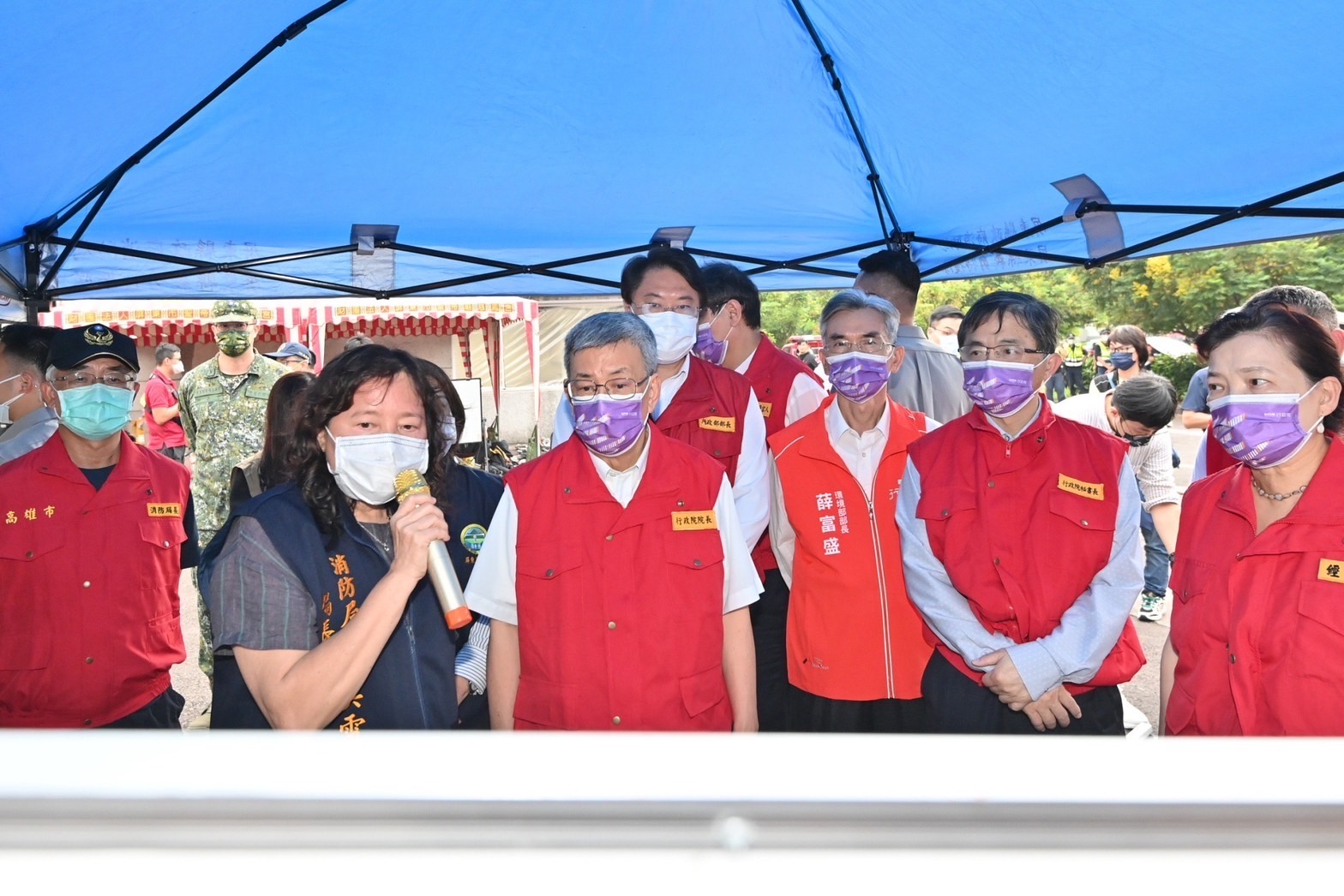此行,行政院李孟諺秘書長、林子倫發言人、內政部林右昌部長、經濟部王美花部長、環境部薛富盛部長、衛生福利部王必勝次長及消防署蕭煥章署長等人亦陪同前往。
