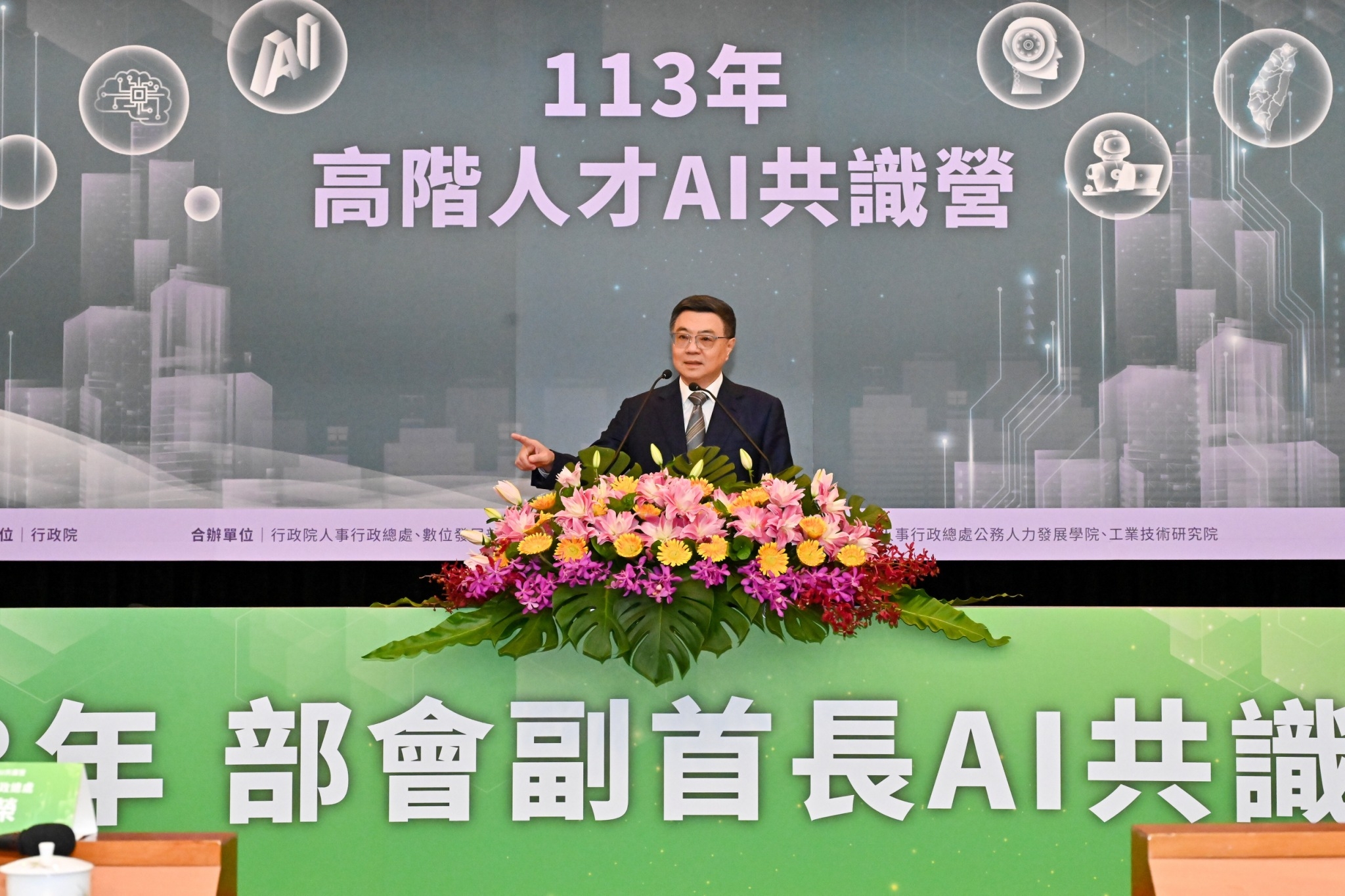 行政院長卓榮泰今(7)日出席行政院人事行政總處、數位發展部、以及台灣人工智慧學校共同舉辦的「部會副首長AI共識營」時表示,為建構臺灣AI產業健全發展的基礎環境,政府積極從政策面、法規面及執行面三方面著手,期許今日出席AI共識營的所有部會副首長,能夠熟悉大型語言模型的運作方式、AI科技潛在能力,以及對整體社會的影響,並將積極創新的思維、協同合作的精神帶回部會,實現臺灣成為世界科技領頭羊、科技大國的雄心大志。