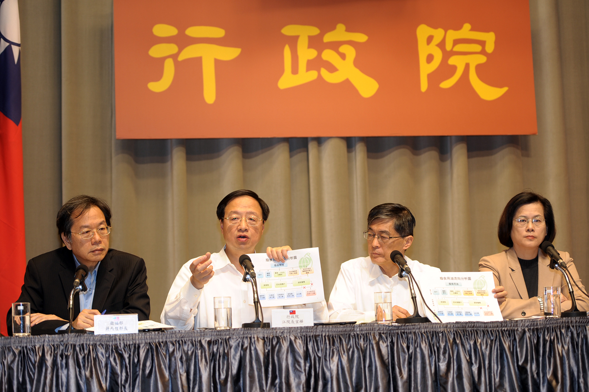 江院長曾於103年9月17日提出強化食安八大措施,包括:加重刑責罰金、提高檢舉獎金、中央檢舉專線、油品分流管制、廢油回收管理、落實三級品管、食品追溯追蹤以及食品GMP改革。