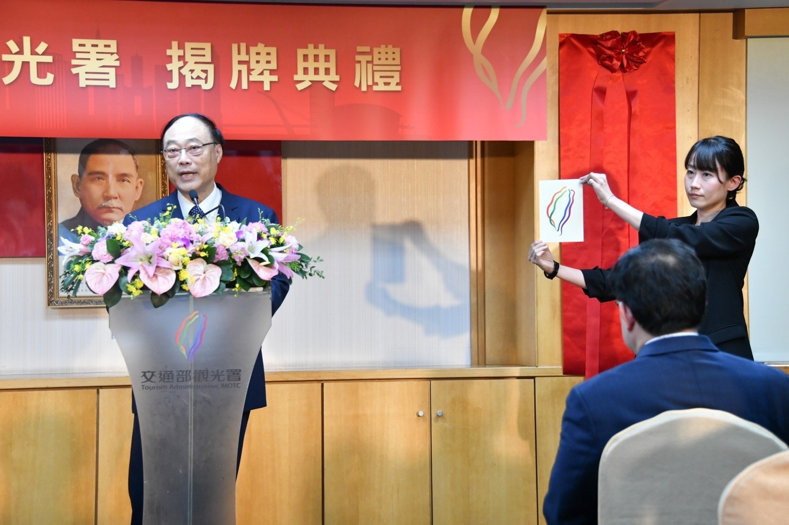 此行,鄭副院長到場後,首先觀賞國內外觀光產業相關人士祝賀影片,並於致詞後,與張子敬政務委員、交通部王國材部長、觀光署周永暉署長、總統府資政及台灣觀光協會葉菊蘭會長、行政院毛治國前院長、陳歐珀立委、謝衣鳳立委、陳雪生立委、國立臺北藝術大學朱宗慶前校長等人手持揭牌紅繩,在倒數聲中一同揭下紅布,完成揭牌儀式。
