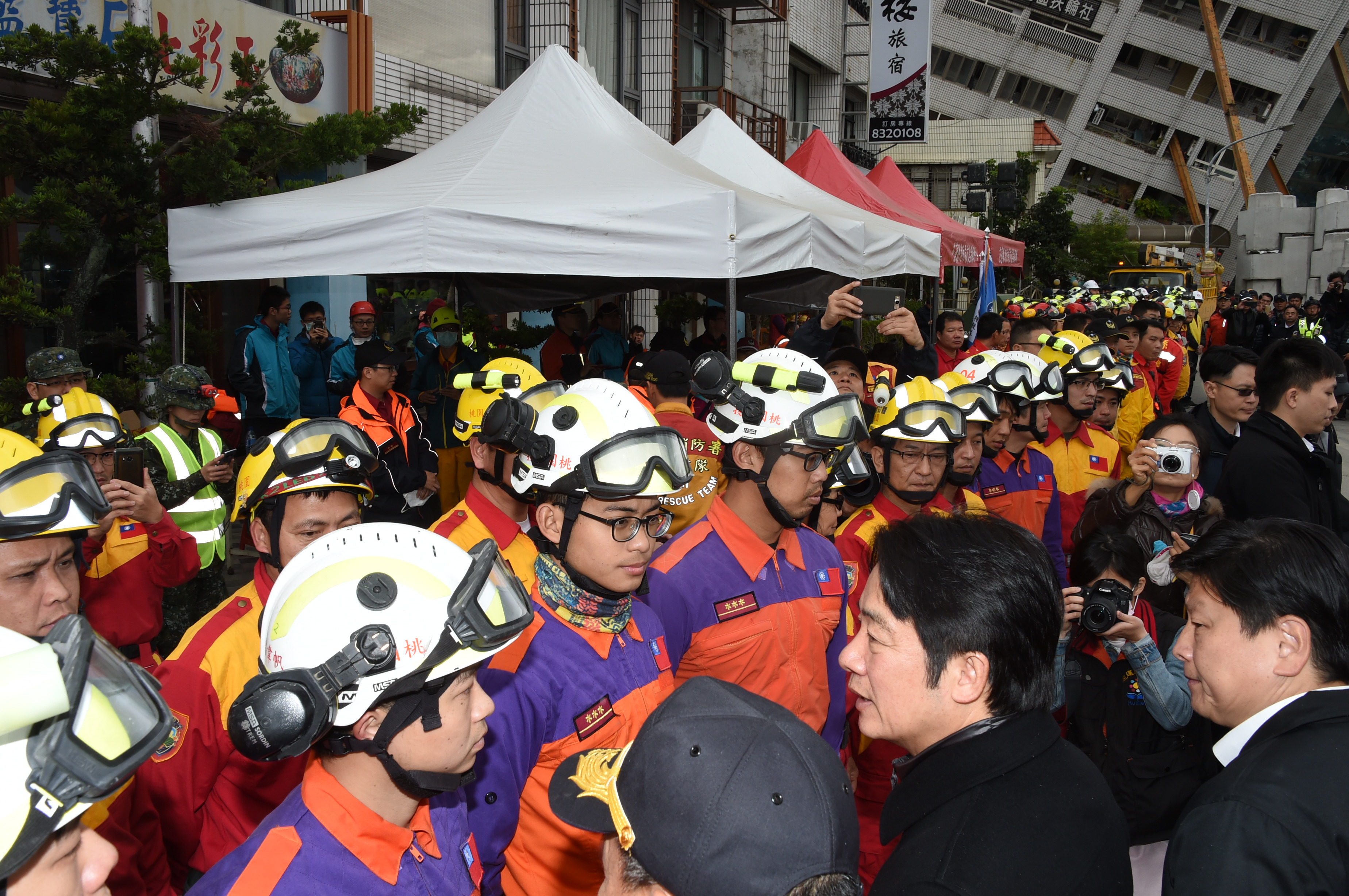 賴院長隨後在慰勞台南市政府協助花蓮修路同仁時表示,台南市地震受到各界關心,本次台南市政府派遣工程團隊到花蓮協助重建工作,由副市長帶隊,相關人員約50多人、重機械車輛30餘輛,希望借重台南市辦理重建的經驗協助花蓮。