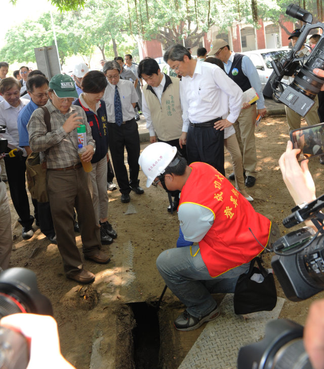 隨後,張副院長前往國立成功大學光復校區,訪視校園防治登革熱孳生源清除成果,對於該校清除樹洞和水溝等孳生源及於古蹟通風口加設防護網,表達高度肯定。