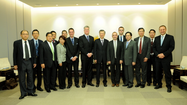 歐洲商會今年9月20日第二度發布《加強歐盟與臺灣貿易之措施》(EU-Taiwan Trade Enhancement Measures,TEM)報告;研究結果顯示:由於WTO多邊貿易對談延宕,各國轉藉雙邊協議解決經貿障礙,歐債問題也使得歐盟需加重倚賴亞洲市場。該報告中引用國際貨幣基金(IMF)預測2013年至2016年台灣經濟表現將優於其他先進的亞洲經濟體系,該期間臺灣的國內生產毛額(GDP)預期將每年成長4.9%,高於香港、新加坡和南韓。另引用華盛頓智庫彼得森世界經濟研究院(Peterson Institute for International Economics)的分析師預測,ECFA協定將有助於台灣在2020年以前增加國內生產毛額210億美元或4.4%,且海峽兩岸貿易量將因協定而增加250億至350億美元;臺灣與中國擁有相同的語言與文化,臺灣企業更與中國大陸企業具有良好關係,因此臺灣將成為跨國公司進入中國的門戶。院長認為歐洲企業應把握機會,運用臺灣做為進入大陸市場的橋頭堡,因此呼籲歐商支持臺灣,推升臺歐經貿投資合作關係。