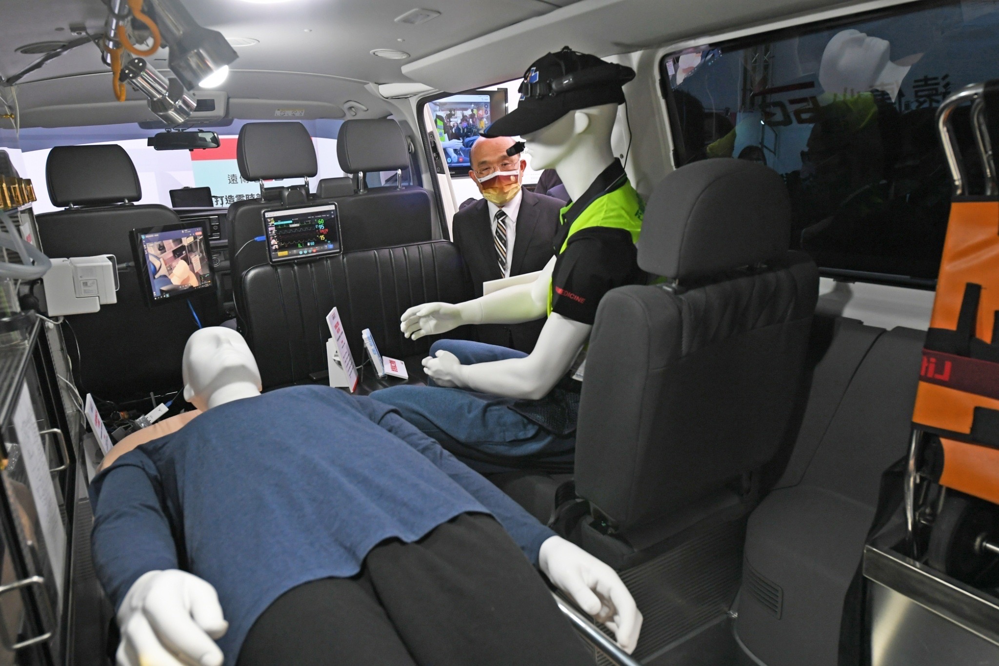 蘇院長今日抵達會場後,首先觀賞「飛馬跆拳道」小朋友與DJ Andy透過5G及3D投影技術進行異地同步演出。隨後,院長現地參觀5G垂直場域應用體驗,體驗中華電信、遠傳電信及台灣大哥大展示5G技術在智慧文化娛樂、智慧醫療與智慧交通領域及自駕車的應用。院長更在體驗5G異地共演及互動技術時,開心擺出招牌「衝衝衝」的手勢,與現場人員互動有趣,氣氛融洽熱絡。