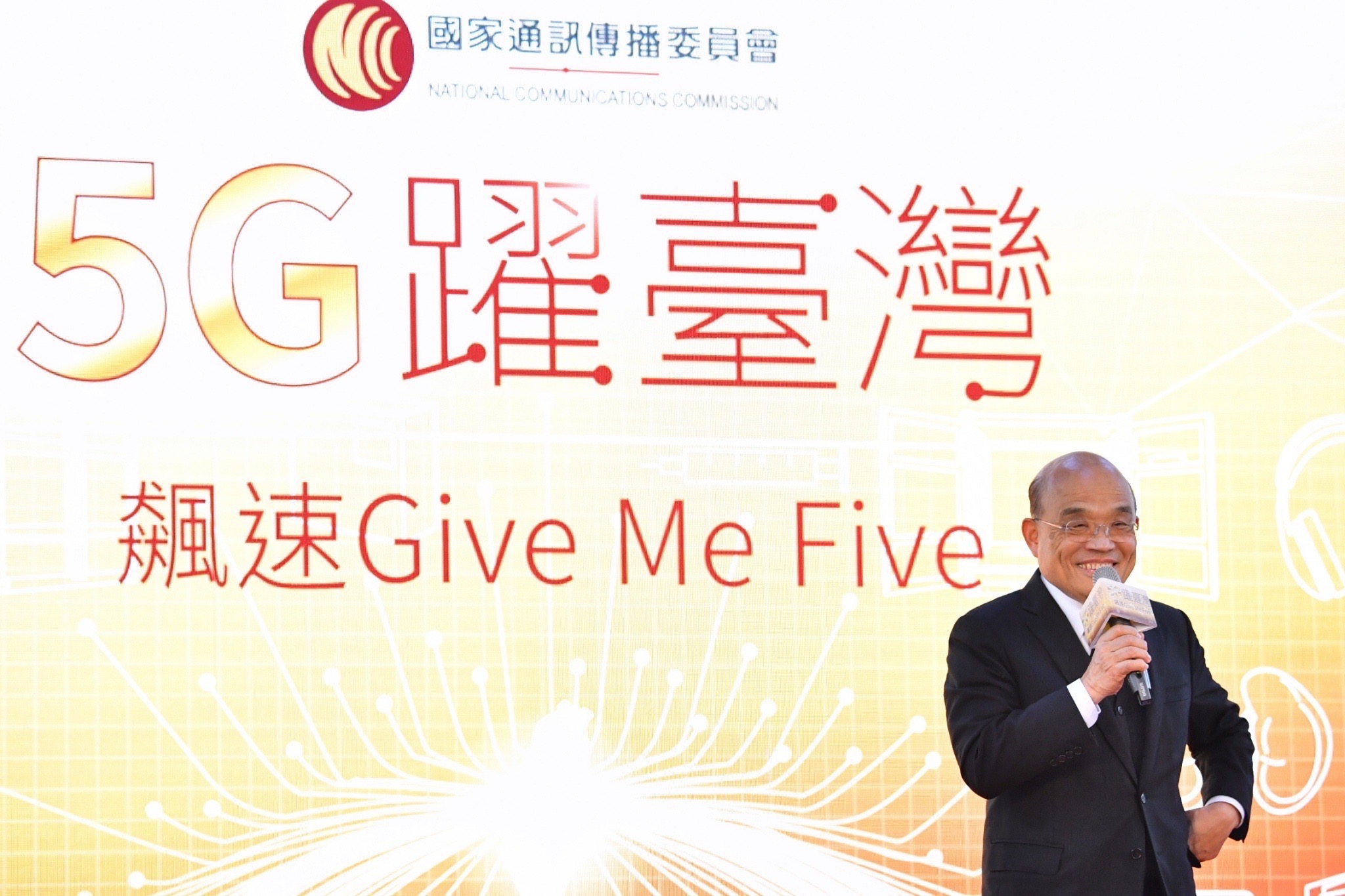 行政院長蘇貞昌今(23)日出席「『5G躍臺灣 飆速Give Me Five』5G垂直場域體驗週典禮活動」時表示,行動通訊技術發展快速,為跟上時代,政府修改法令、延長時限及投入資源,並結合民間資源、公私協力,希望完善我國行動網路環境、縮短城鄉資訊差距,讓臺灣在行動通訊領域永遠站在第一線,並在世界占有一席之地。