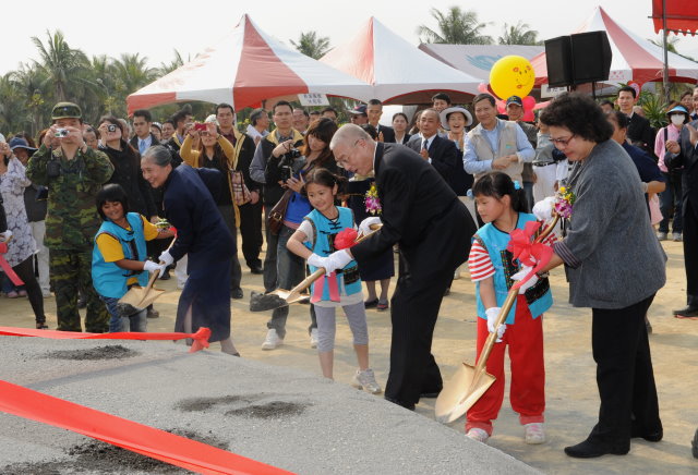 行政院長吳敦義今(12)日出席高雄市杉林慈濟大愛園區第二期永久屋暨新建國小動土典禮時表示,慈濟大愛園區第一期以超前的速度及超高的效率快速讓災民進住,今天動工的第二期永久屋未來可再提供約250戶永久屋供災民進住。
