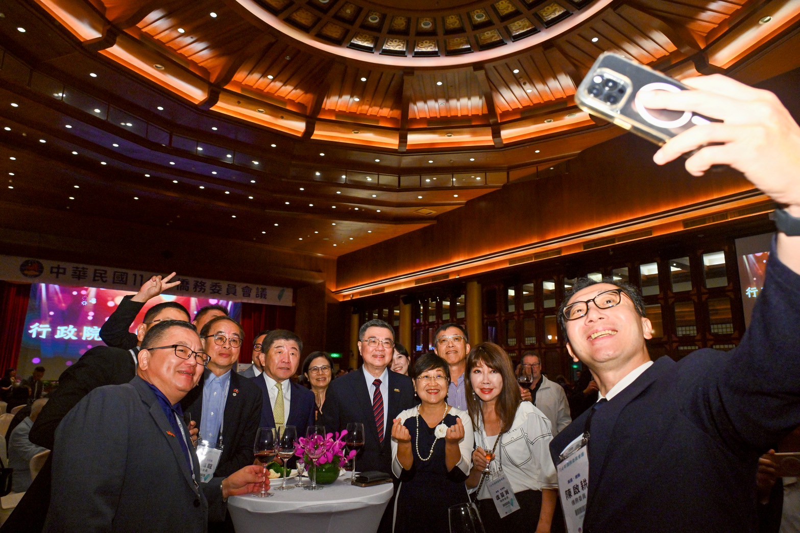 致詞結束後,卓院長向與會貴賓舉杯敬酒,隨後逐一與來自全球各地的僑務委員致意。包括行政院陳時中政委、楊珍妮政委、李慧芝發言人、阮昭雄副秘書長、僑務委員會徐佳青委員長等均出席今日歡迎酒會。