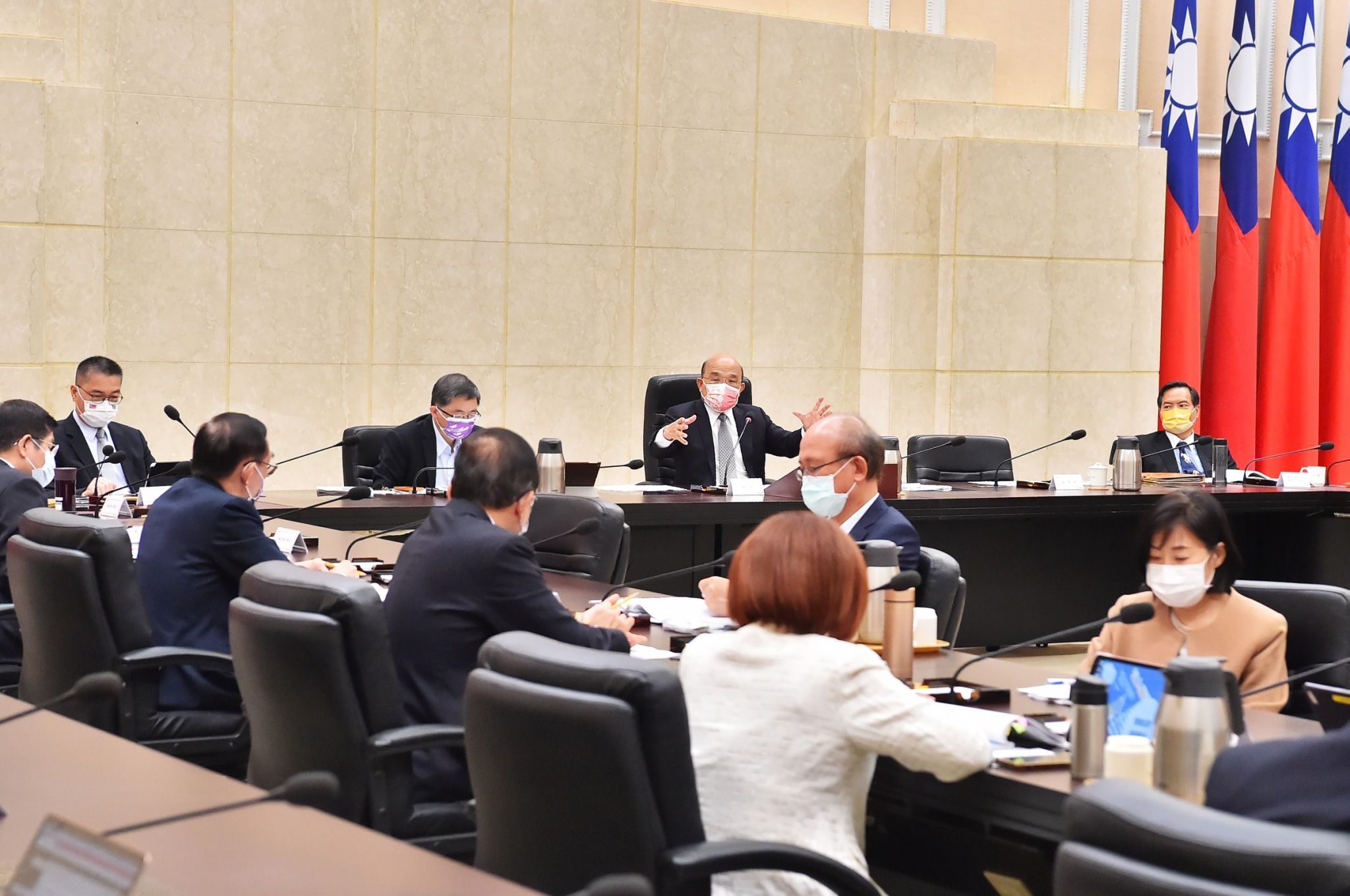 在「假」方面,蘇院長要求各查察機關,如有接獲企圖干預選舉的假訊息,應在第一時間嚴加查辦;另相關部會就主管業務如有錯假資訊,也務必第一時間對外即時澄清。此外,為維護候選人的安全、投開票所的秩序,並發揮安定人心的作用,蘇院長表示,在「安」方面,請各有關部會,從預防到突發情況的因應,都要有所準備,務必嚴密做好維安工作。蘇院長強調,政府有責任維護選舉的公平性,端正選風,讓人民選出好的人在公職位上,才能讓國家進步、社會安定、臺灣有希望,這也是大家的職責所在,請務必全力以赴。
