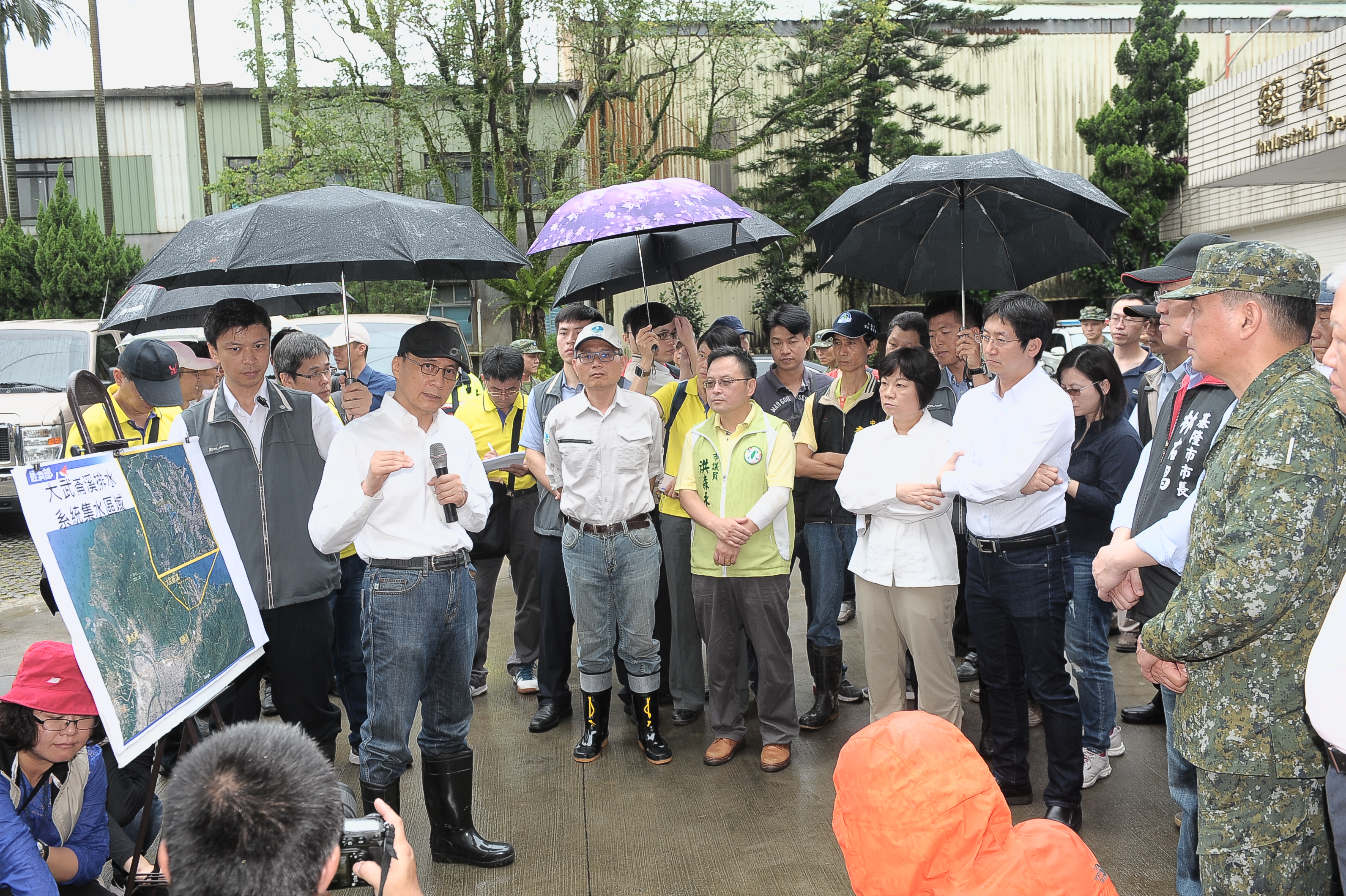 關切豪雨造成災情,行政院長林全今(3)日前往基隆市勘查大武崙工業區與大武崙溪堤防損壞情形,以及赴新北市視察員潭溪堤防工程。林院長表示,目前鋒面正移往中南部地區,請民眾維持警覺;政府將儘快處理救災及賑災事宜,務必即時復原水電,使災區恢復原狀,並從寬、從優補助災損。