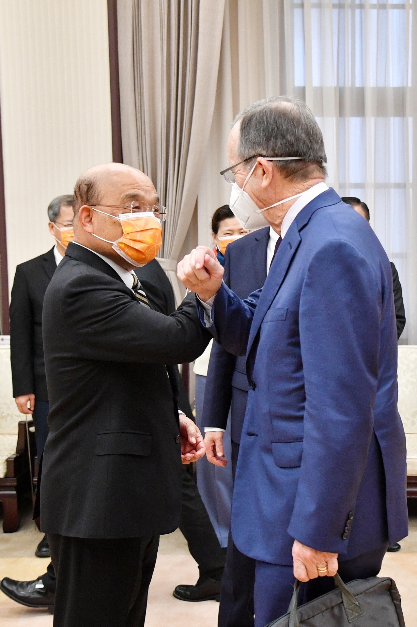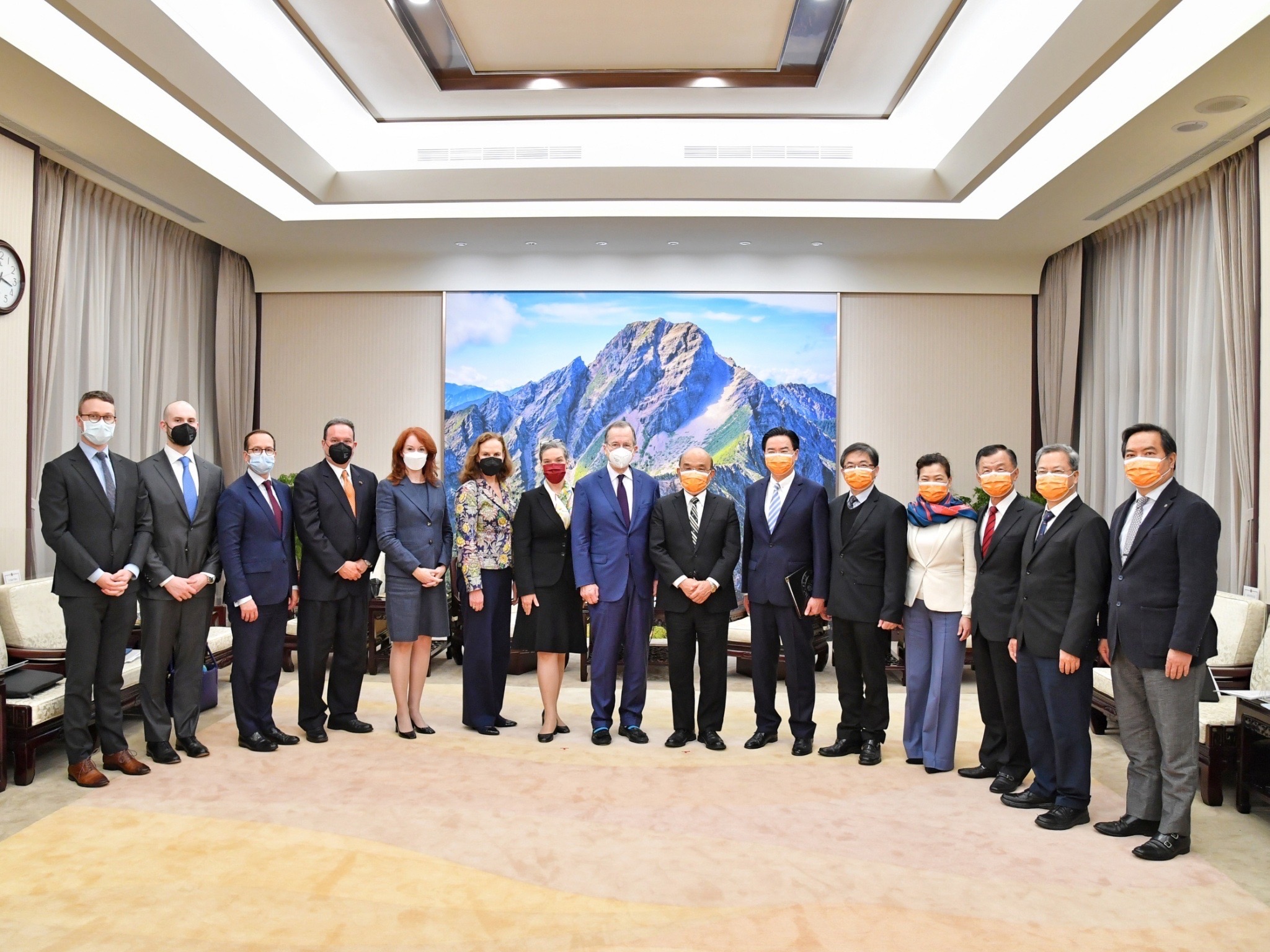 蘇院長表示,從美國總統拜登昨日派遣穆倫前主席率領代表團訪臺,第一時間展現態度,即可看出我國盟友美國高度重視臺灣,相信透過此次與訪團成員相互交換意見,定能更加瞭解臺美雙方共同堅守自由、民主等普世價值的立場,以及如何藉由團結合作,讓亟欲使用武力侵略他國的極權獨裁國家領導者不敢輕舉妄動,尤其是與臺灣相鄰的中國。最後,院長再度向訪賓表達熱烈歡迎之意。