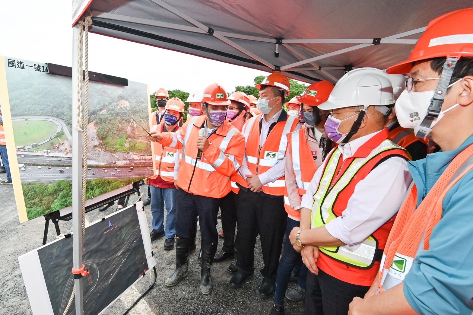 關心國道汐止段坍塌路段搶修復原情形,行政院長蘇貞昌今(6)日親自前往現地視察時表示,感謝所有第一線工作同仁在事發第一時間即進行相關防護措施,避免任何災害傷亡發生,同時亦立刻進行搶救減災與復原工作,在大家共同努力下,不但已搶通主線內側車道,明(7)日也可望進一步搶通主線其他車道,也請所有工作同仁注意自身安全。蘇院長強調,此次邊坡滑動事件已非首次發生,也請交通部王國材部長針對類似情形研擬長期策略,密切嚴防主要交通幹道邊坡滑動再次發生。
