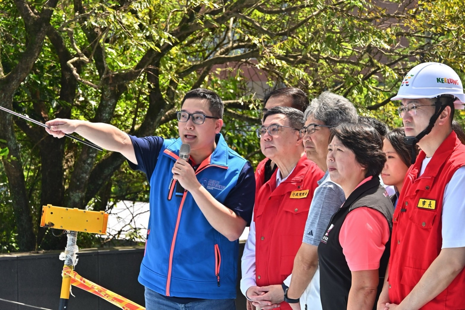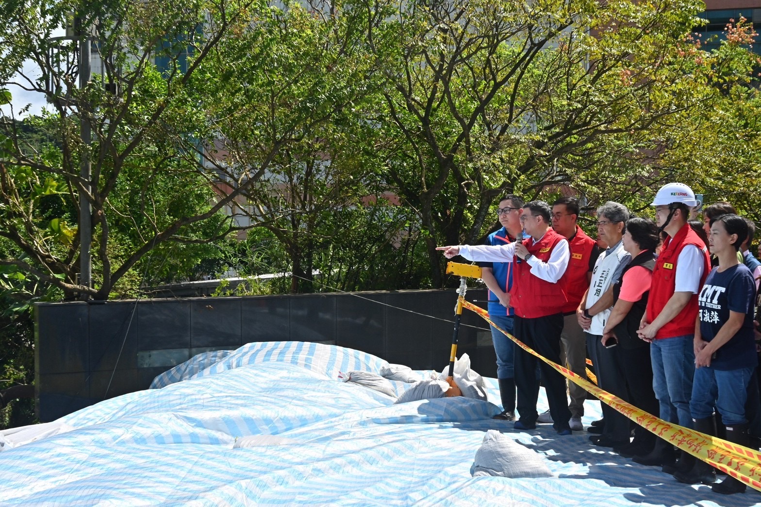 致詞結束後,卓院長偕同行政院李慧芝發言人、環境部彭啓明部長、環境管理署顏旭明署長、王正旭立法委員、基隆市謝國樑市長等人,在馬局長陪同下,前往清潔大樓後方現地視察,瞭解災損情形。卓院長也請在地議員如接獲其他相關災損情形,儘速彙整回報,讓中央及地方政府能夠即時協助。