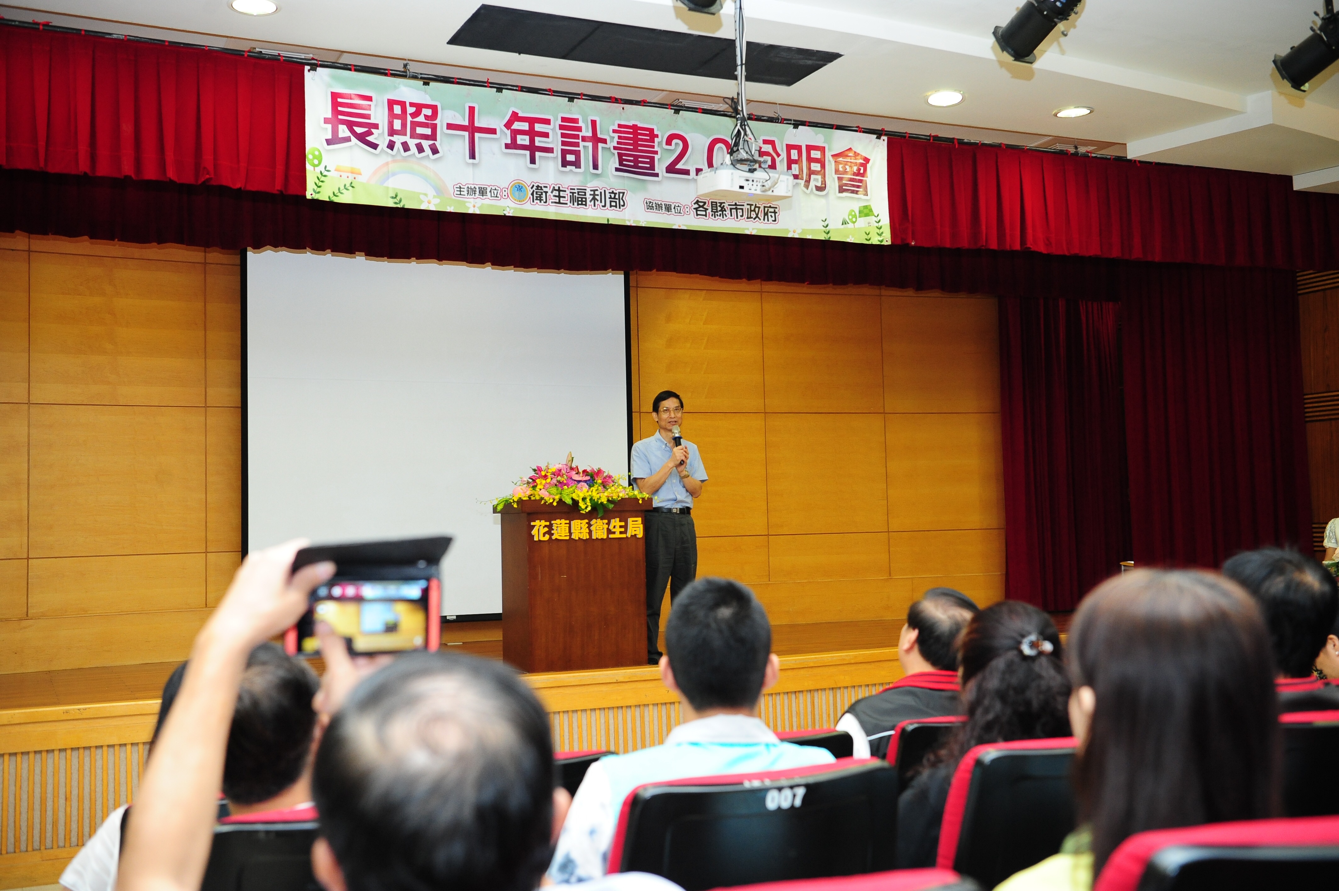 行政院政務委員林萬億今(6)日率衛福部社家署署長簡慧娟等官員,於花蓮縣舉辦「長照十年計畫2.0」全國巡迴說明會。