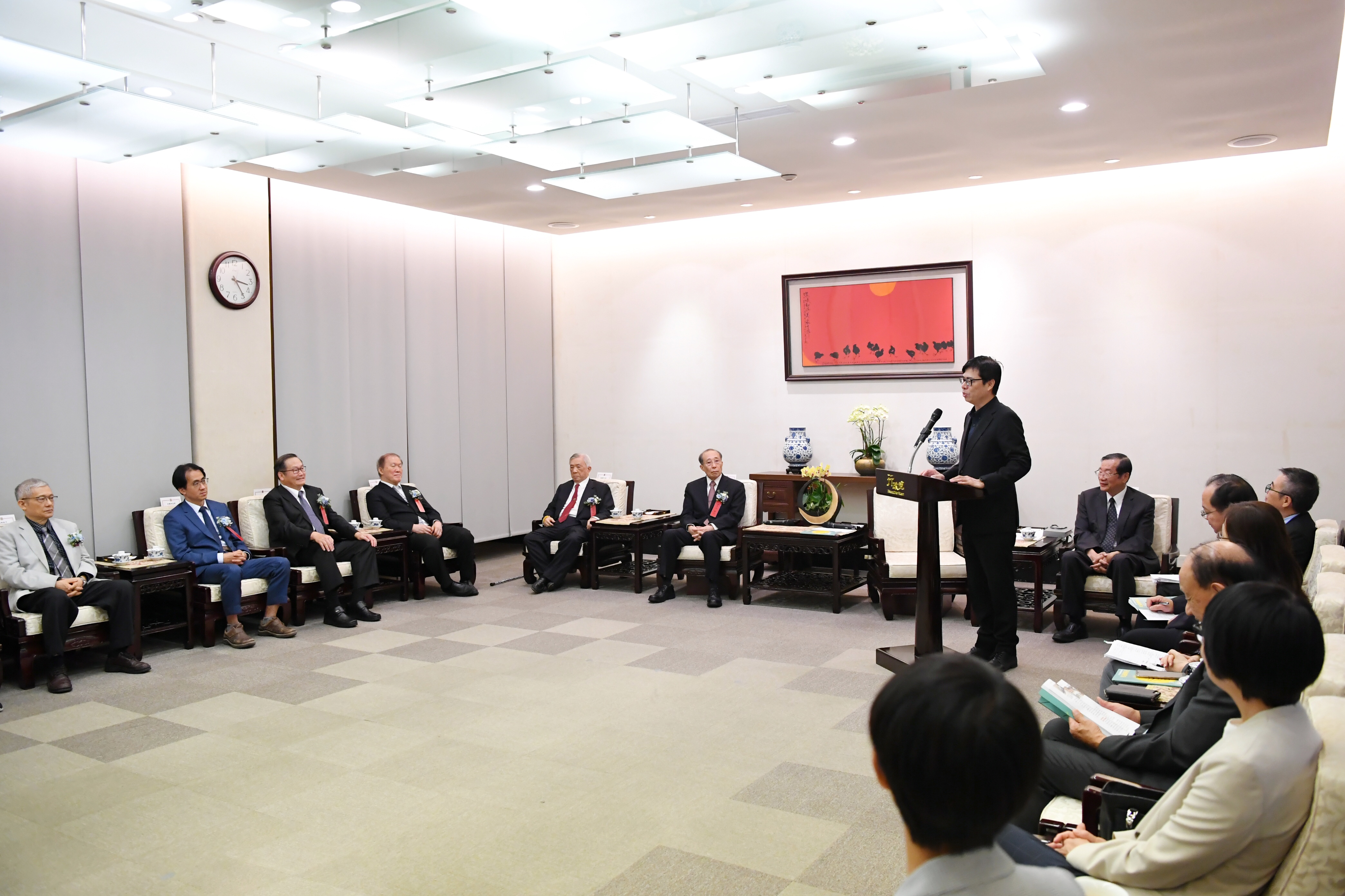 行政院副院長陳其邁今(25)日在行政院代表蘇貞昌院長接見「第29屆醫療奉獻獎」得獎人一行,陳副院長除感謝得獎人在台灣各角落的辛苦付出及無私奉獻,守護國人健康,讓台灣社會更溫暖,是醫界後輩學習的典範,也強調政府會努力整合國家及各大醫學中心資源,運用新科技、人工智慧及精準醫療,提供更進步、更即時及全面性的全人照顧。