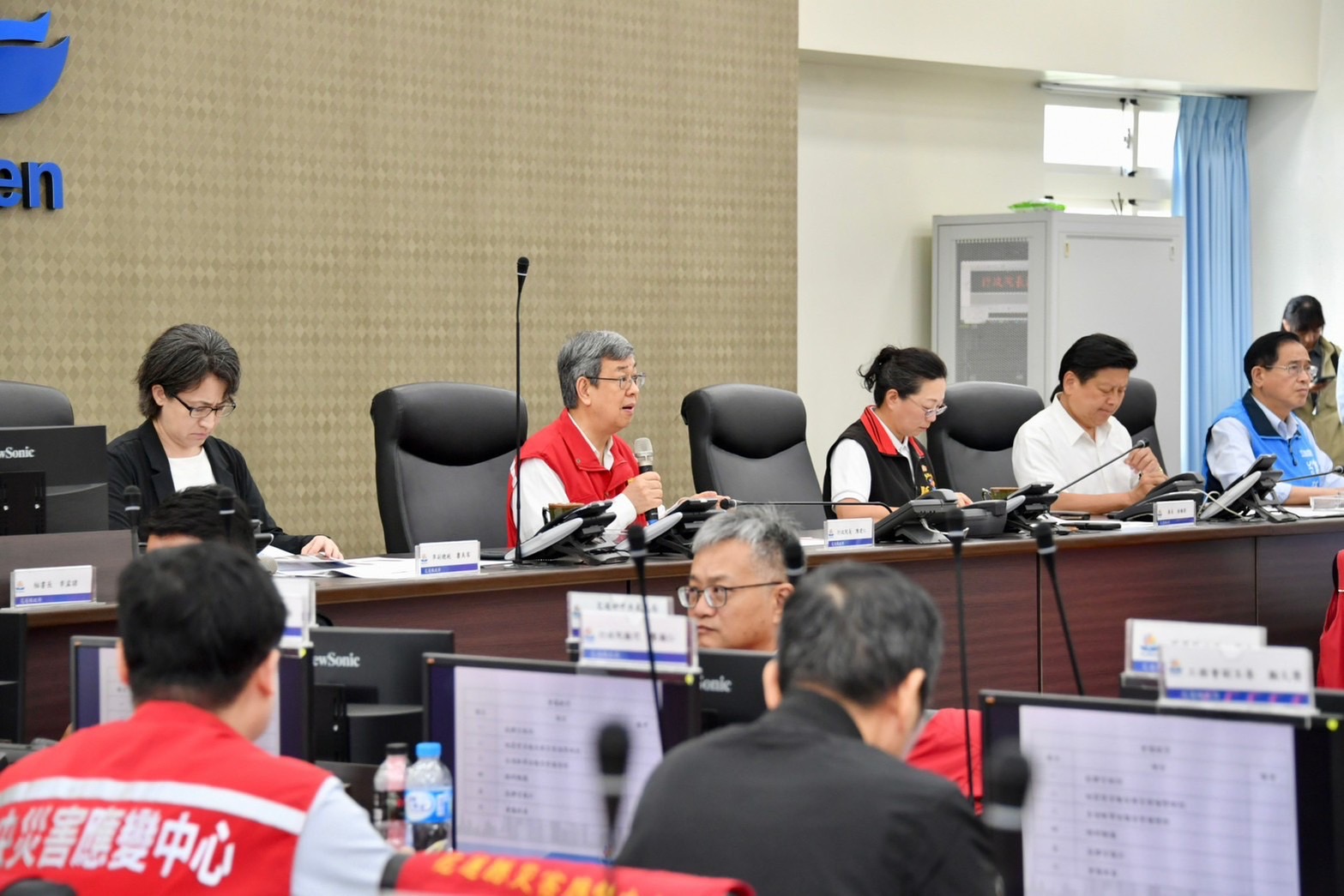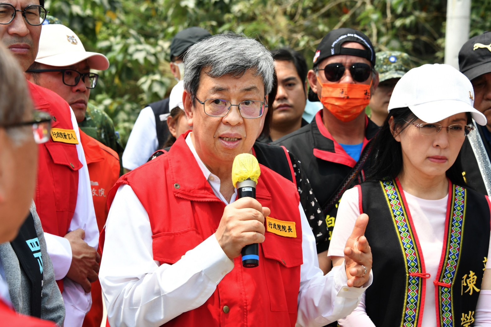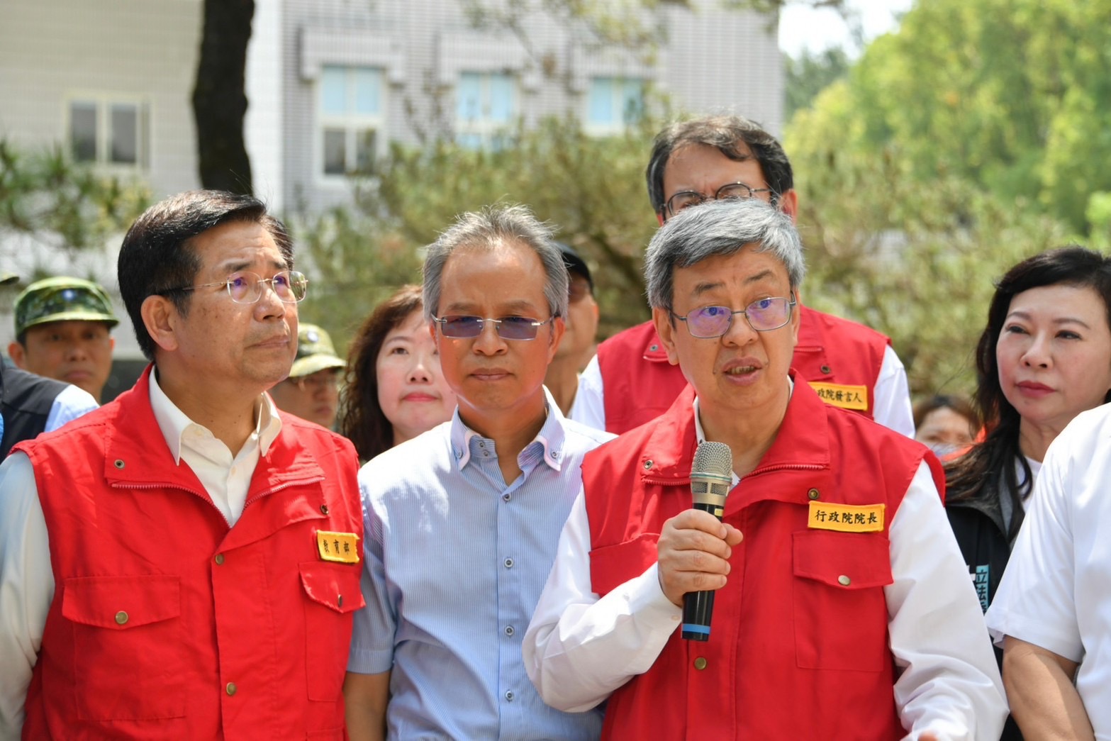 陳院長抵達應變中心後,偕同蕭美琴副總統當選人、行政院李孟諺秘書長、林子倫發言人、經濟部王美花部長、教育部潘文忠部長、交通部陳彥伯次長、沈伯洋立委、林憶君立委、陳瑩立委、傅崐萁立委、鄭天財立委、花蓮縣徐榛蔚縣長等,一同聽取花蓮地震搜救、災損與相關應變整備作為。陳院長表示,昨(3)日上午7時58分在花蓮近海發生規模7.2地震後,中央與地方分別即刻成立災害應變中心一級開設,在第一時點實施各項搶救、搶險、搶修等應變處置措施,對於花蓮縣政府團隊及所有救災單位在救災、賑災及安置災民等工作所付出的努力與辛勞,他要致上最高的謝意與敬意。