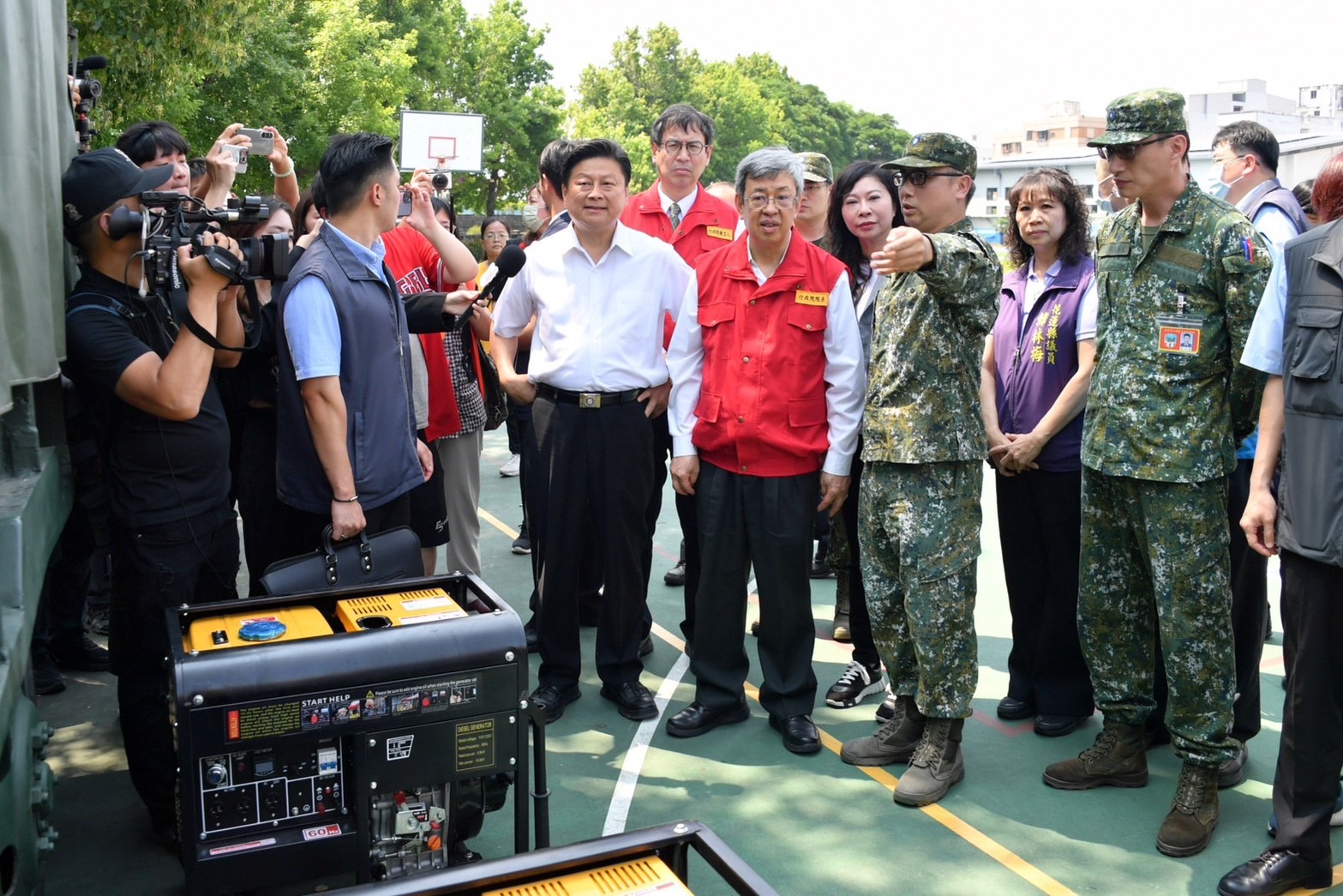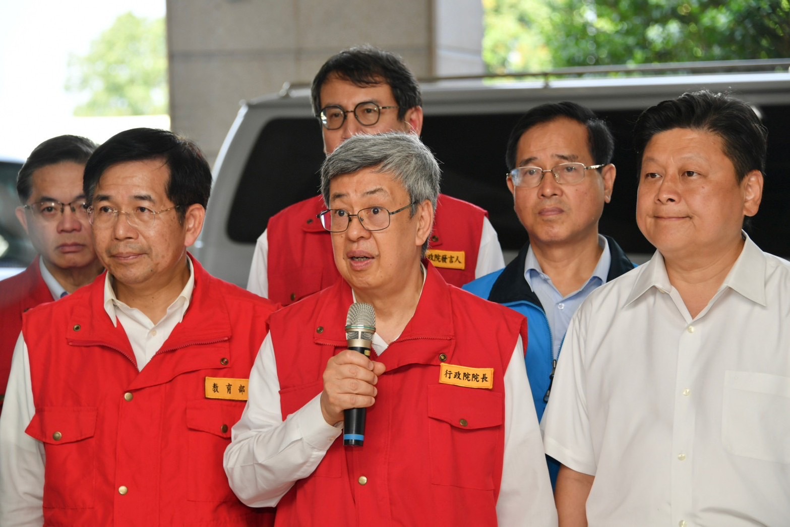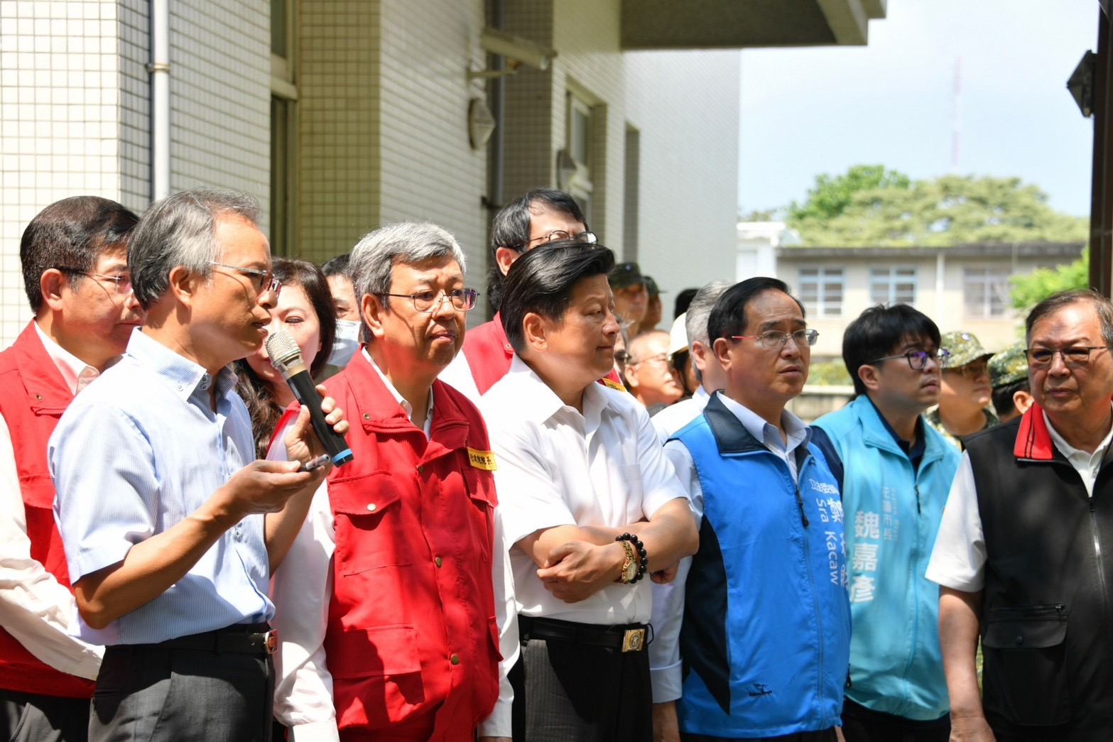陳院長抵達應變中心後,偕同蕭美琴副總統當選人、行政院李孟諺秘書長、林子倫發言人、經濟部王美花部長、教育部潘文忠部長、交通部陳彥伯次長、沈伯洋立委、林憶君立委、陳瑩立委、傅崐萁立委、鄭天財立委、花蓮縣徐榛蔚縣長等,一同聽取花蓮地震搜救、災損與相關應變整備作為。陳院長表示,昨(3)日上午7時58分在花蓮近海發生規模7.2地震後,中央與地方分別即刻成立災害應變中心一級開設,在第一時點實施各項搶救、搶險、搶修等應變處置措施,對於花蓮縣政府團隊及所有救災單位在救災、賑災及安置災民等工作所付出的努力與辛勞,他要致上最高的謝意與敬意。